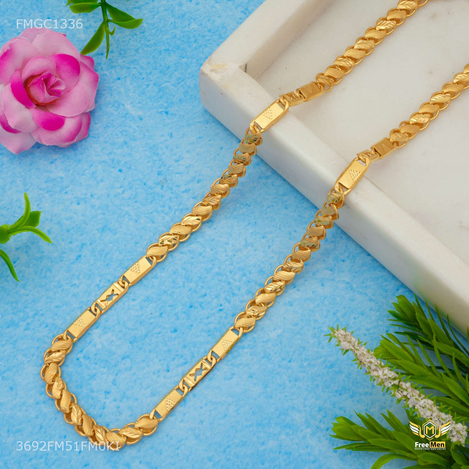 Candy Nawabi with Leaf Lotus gold plated chain For Man - FMGC1336 products are made from high quality material and they are known for their comfort and look across the Globe