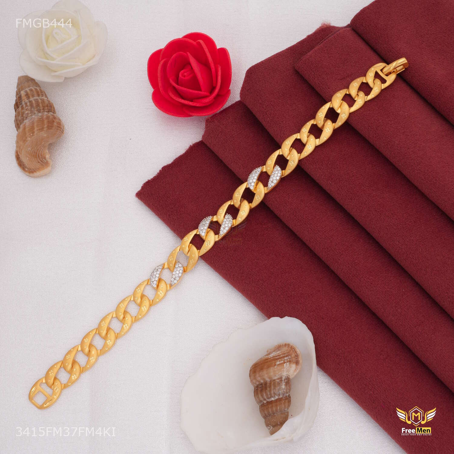 Flat Pokal with AD Gold Plated Bracelet for Men - FMGB444 products are made from high quality material and they are known for their comfort and look across the Globe