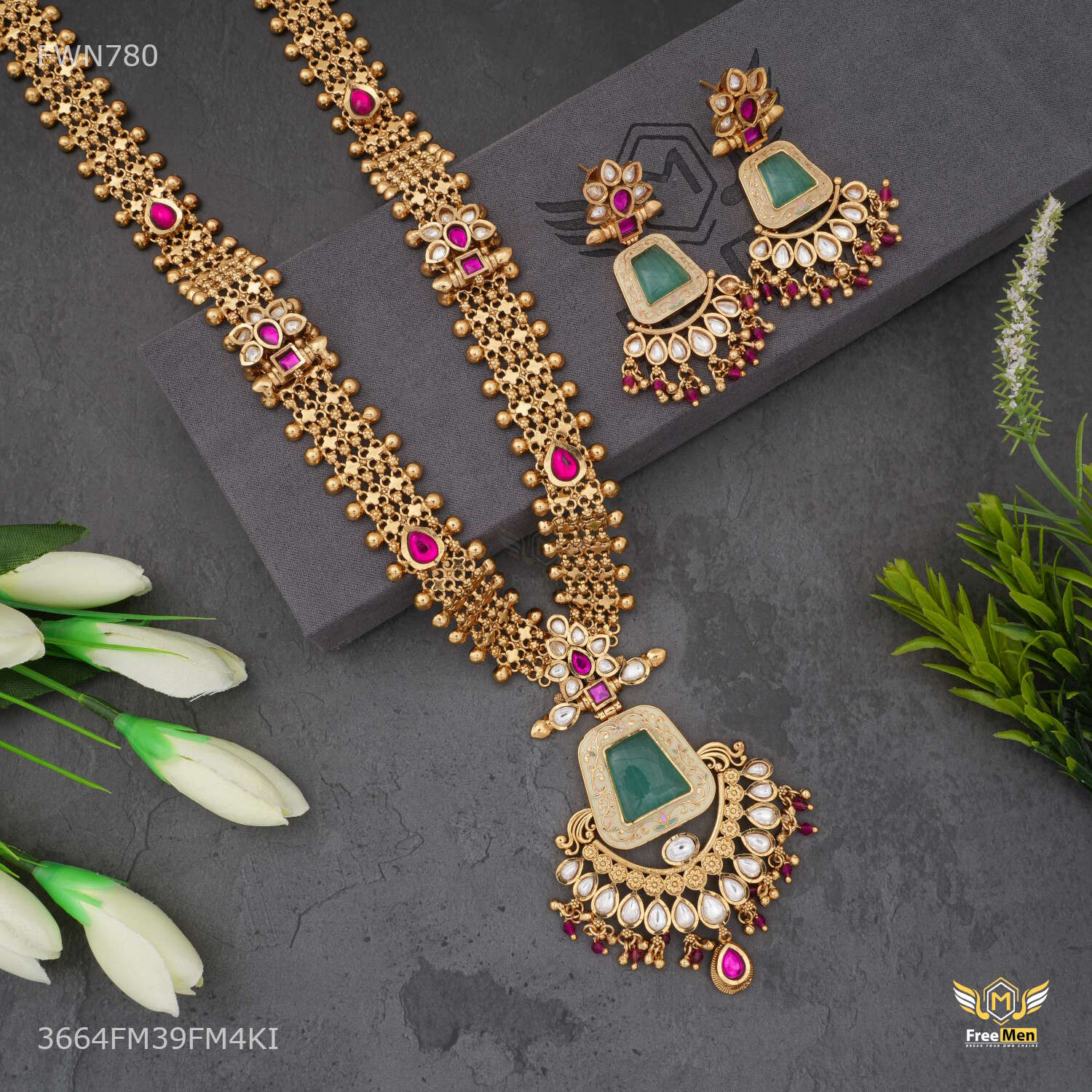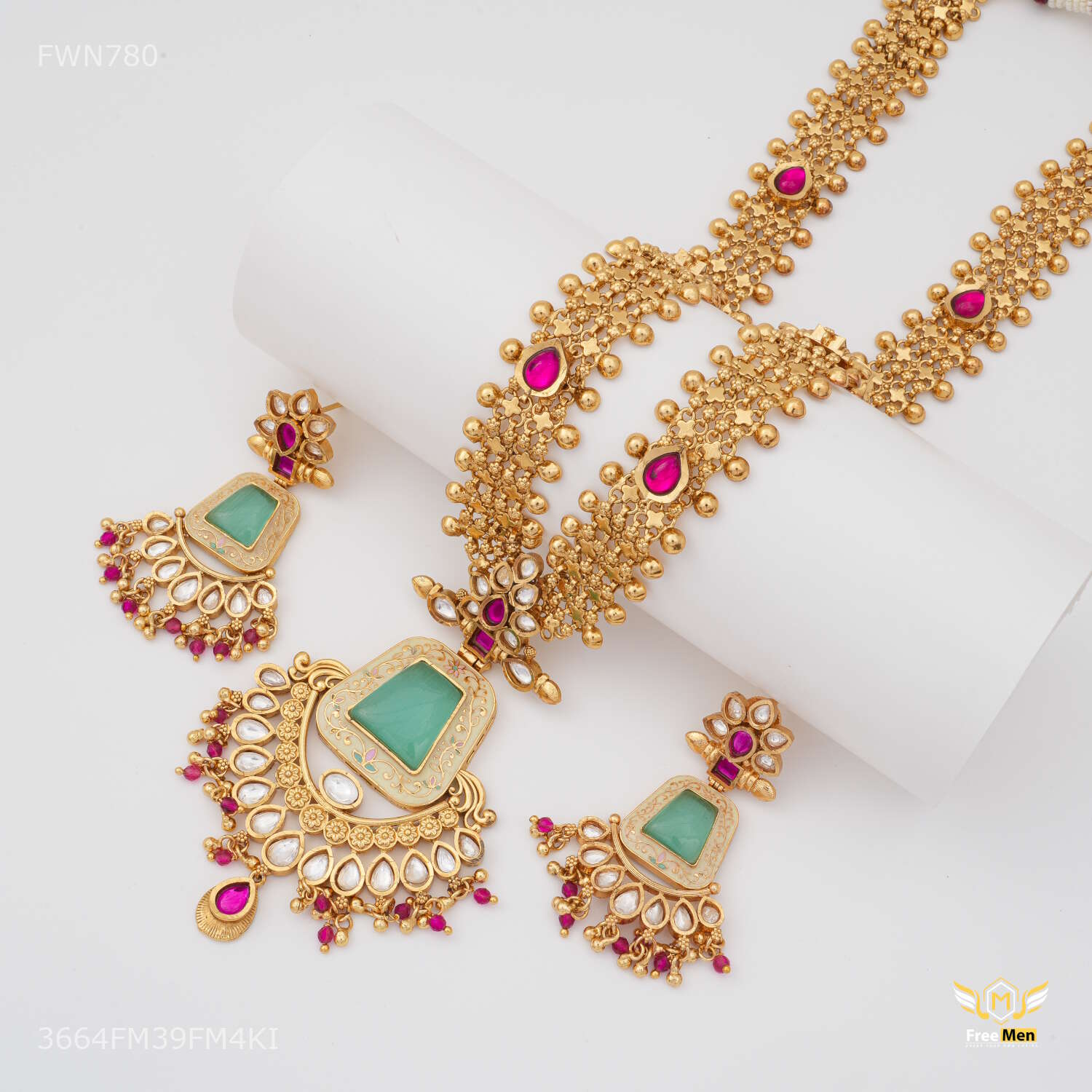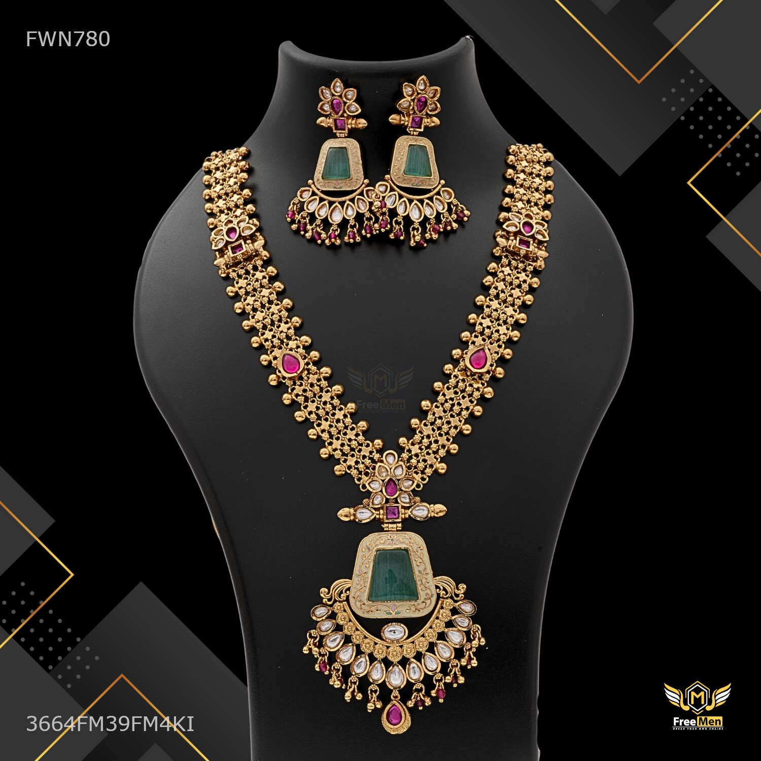 Antique Green with Colorfull AD Necklace with earring for women - FWN780 are made from high quality material and Stone and they are known for their comfort and look across the Globe