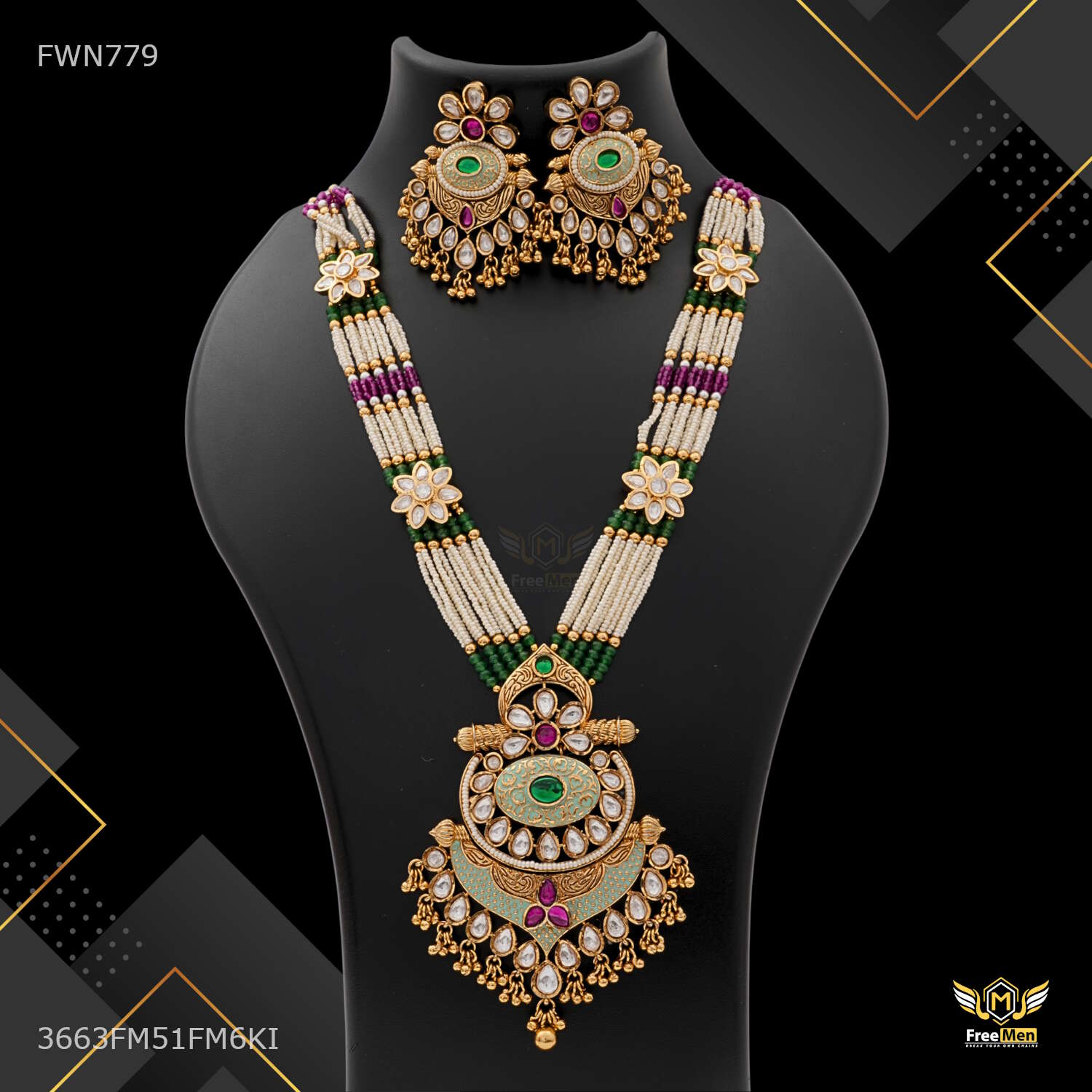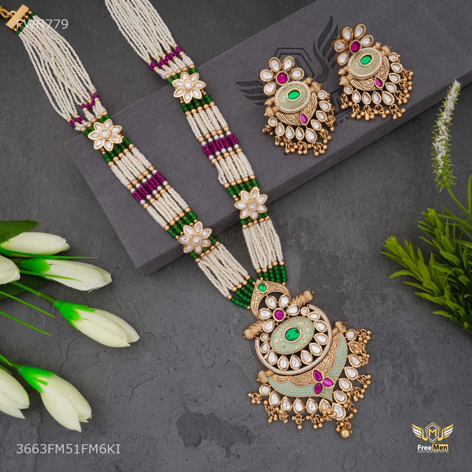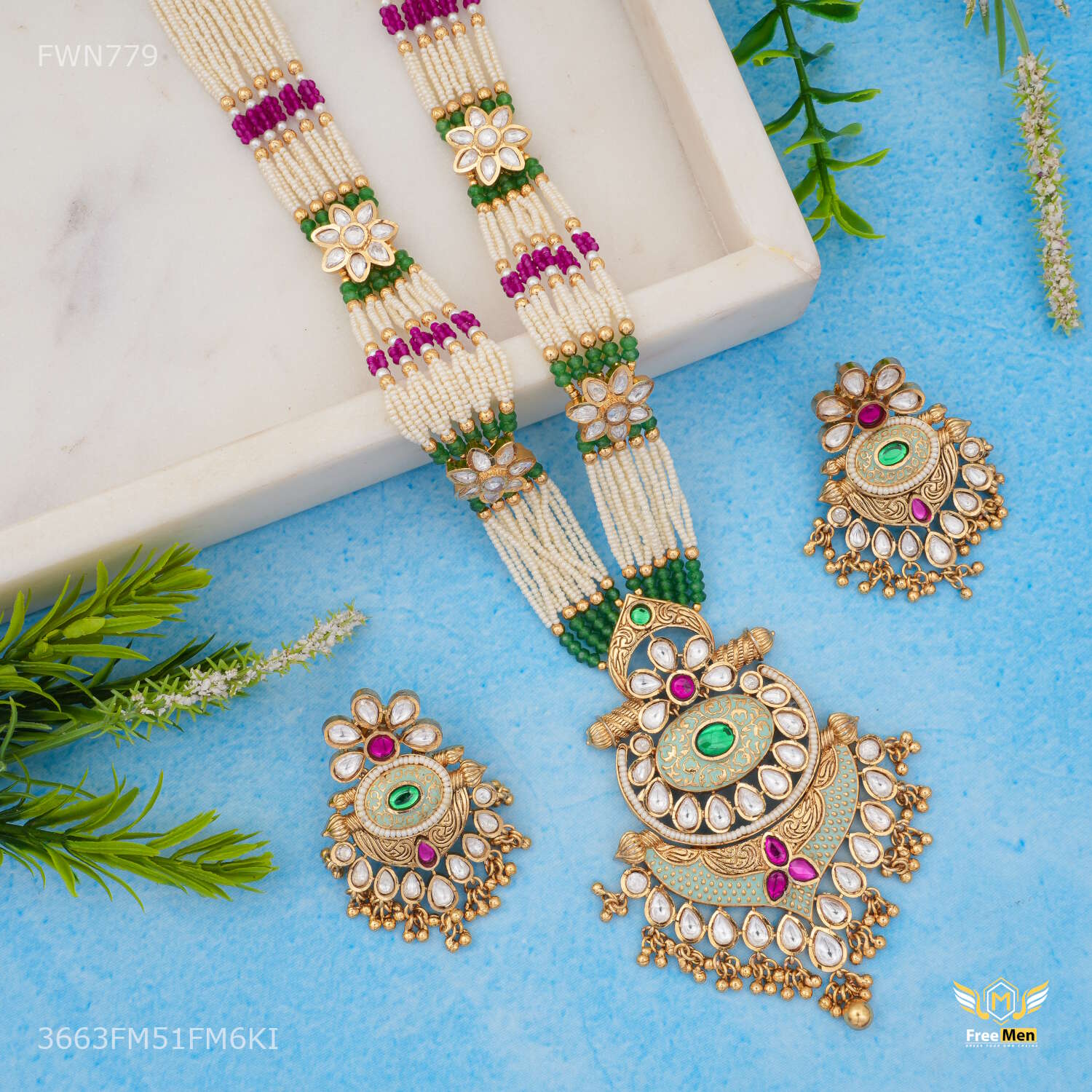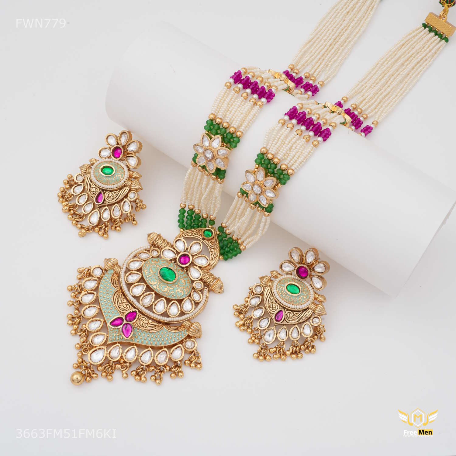 Designer Color Moti AD Antique Necklace with earring for women - FWN779 are made from high quality material and Stone and they are known for their comfort and look across the Globe