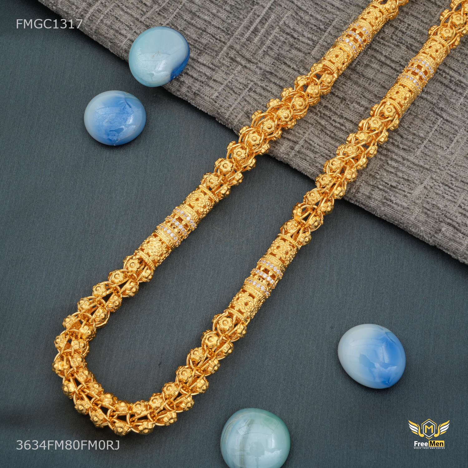 Broad Shini Flower with AD Pipe gold plated chain For Man - FMGC1317 products are made from high quality material and they are known for their comfort and look across the Globe