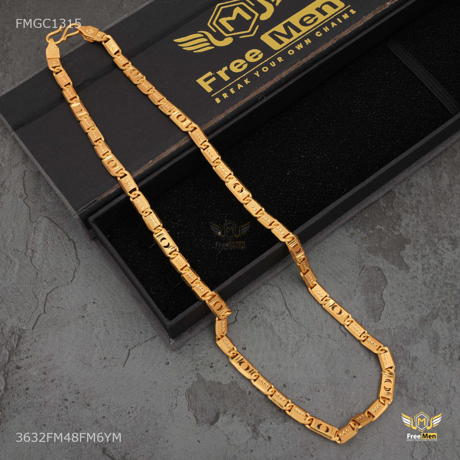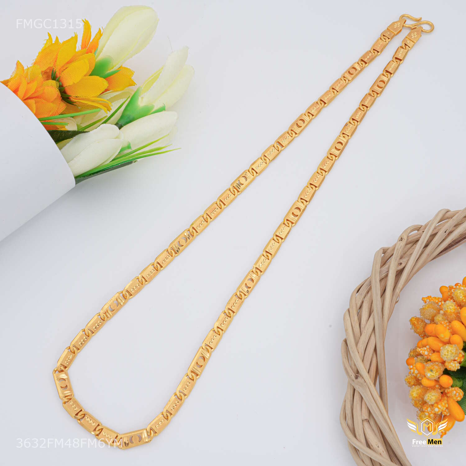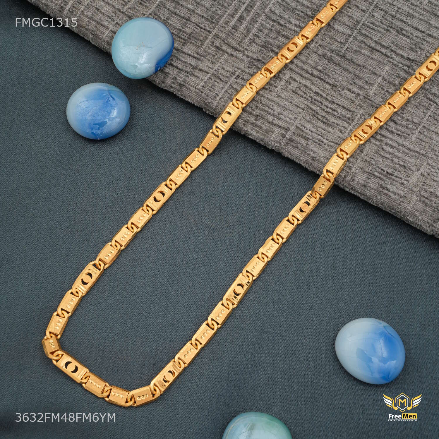 Three by Three Moon cut Nawabi gold plated chain For Man - FMGC1315 products are made from high quality material and they are known for their comfort and look across the Globe