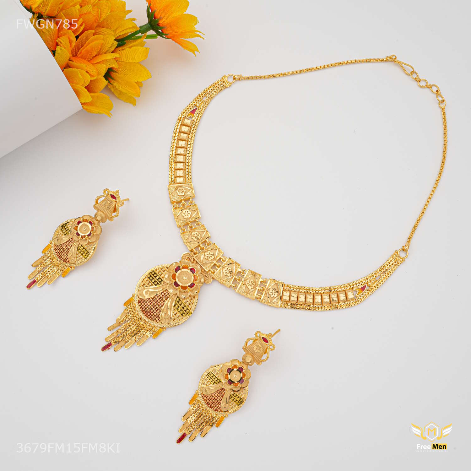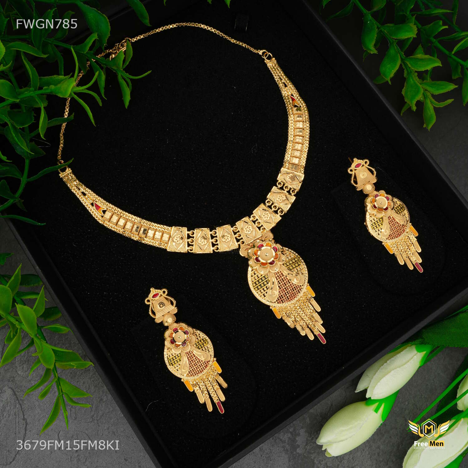 Antique Net with Flower Necklaces for women - FWGN785 perfect necklace for a woman is one that complements her style, personality, and the occasion. Whether it’s a delicate pendant for everyday wear, a statement necklace for a special event, or a layered combination for a fashionable look, the right necklace can enhance a woman’s natural beauty and confidence. Embrace the diversity of necklace styles and let your choice of necklace reflect your unique essence and style journey.