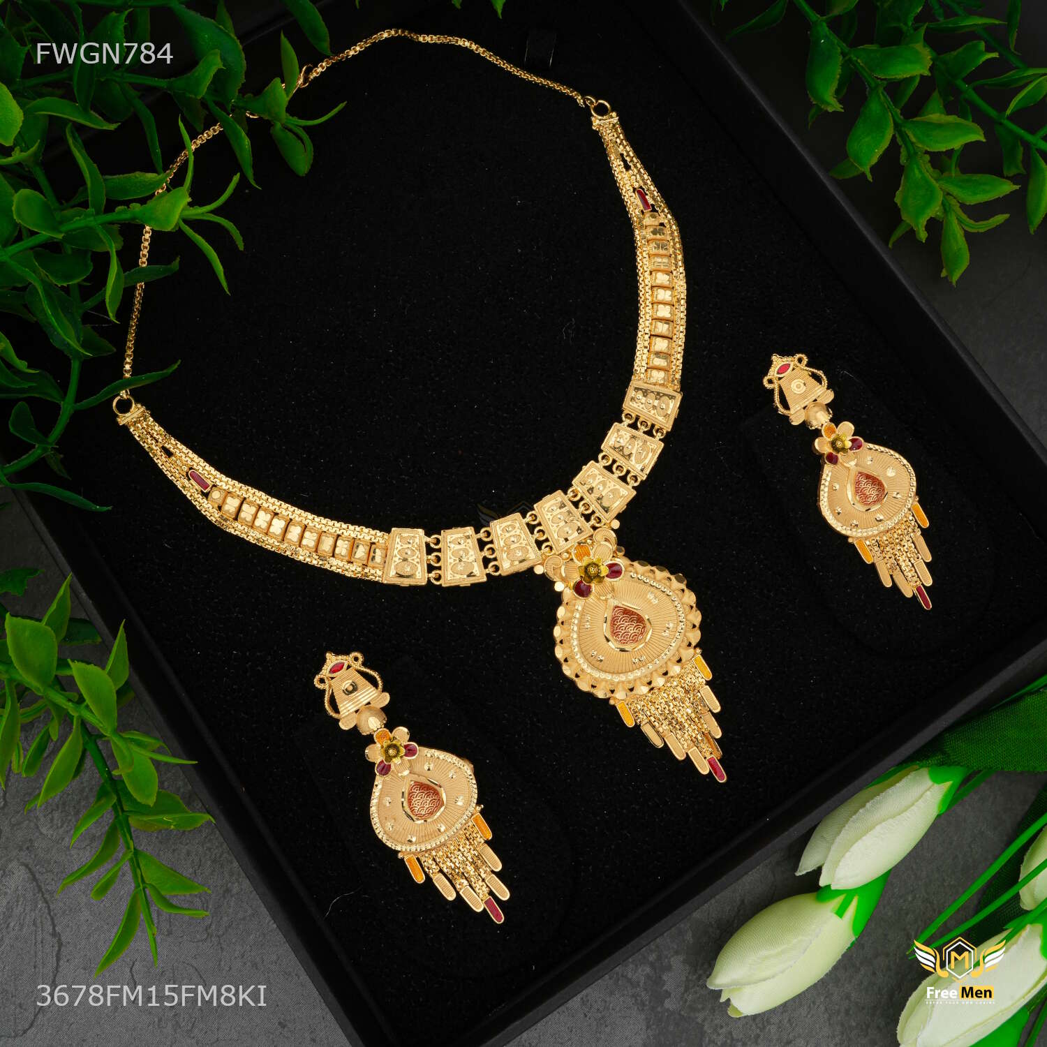 Antique Paan Shape with Flower Necklaces for women - FWGN784 perfect necklace for a woman is one that complements her style, personality, and the occasion. Whether it’s a delicate pendant for everyday wear, a statement necklace for a special event, or a layered combination for a fashionable look, the right necklace can enhance a woman’s natural beauty and confidence. Embrace the diversity of necklace styles and let your choice of necklace reflect your unique essence and style journey.
