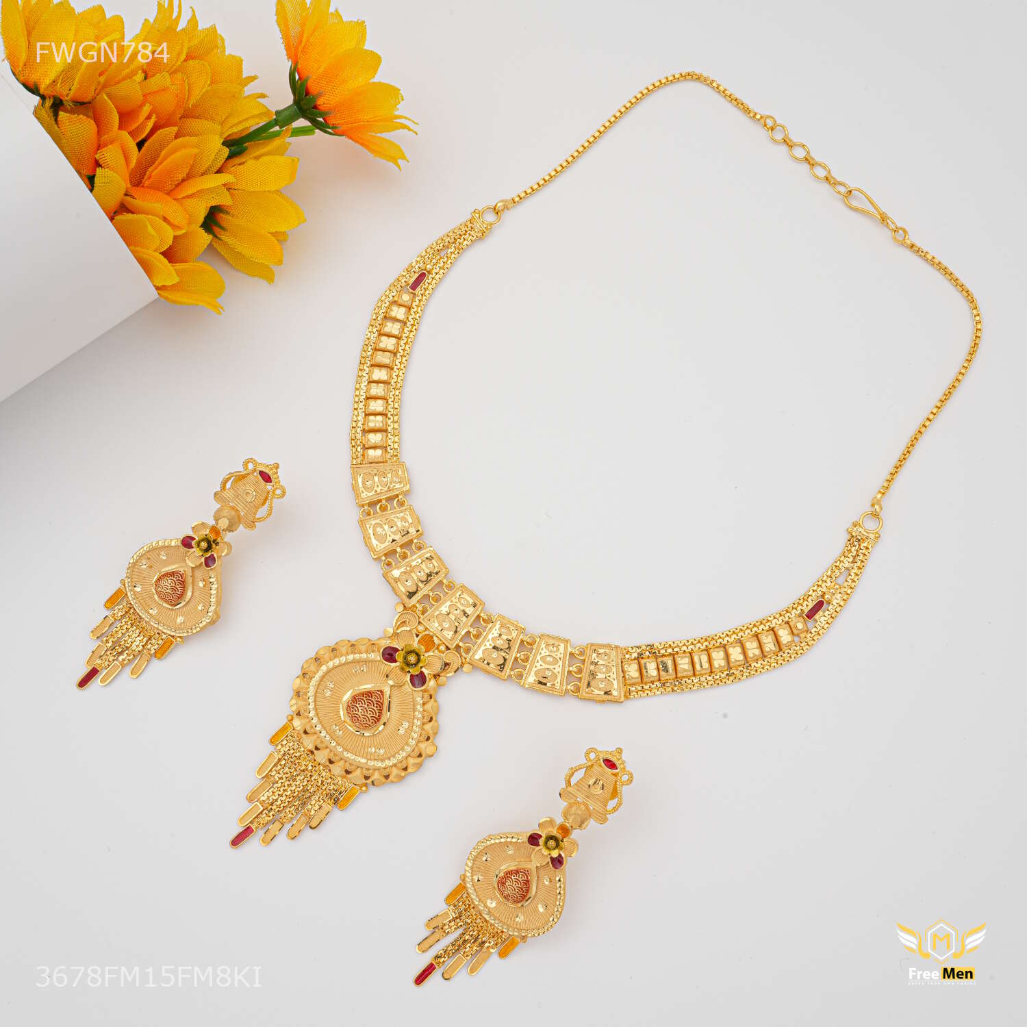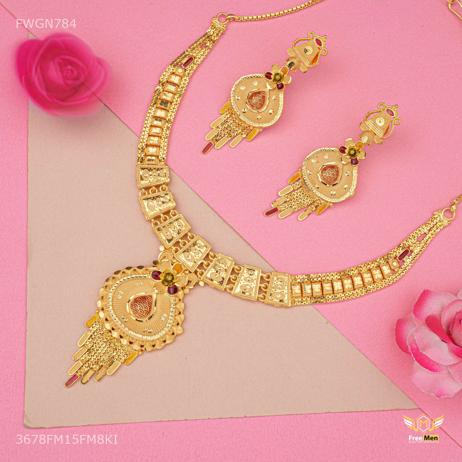 Antique Paan Shape with Flower Necklaces for women - FWGN784 are made from high quality material and Stone and they are known for their comfort and look across the Globe