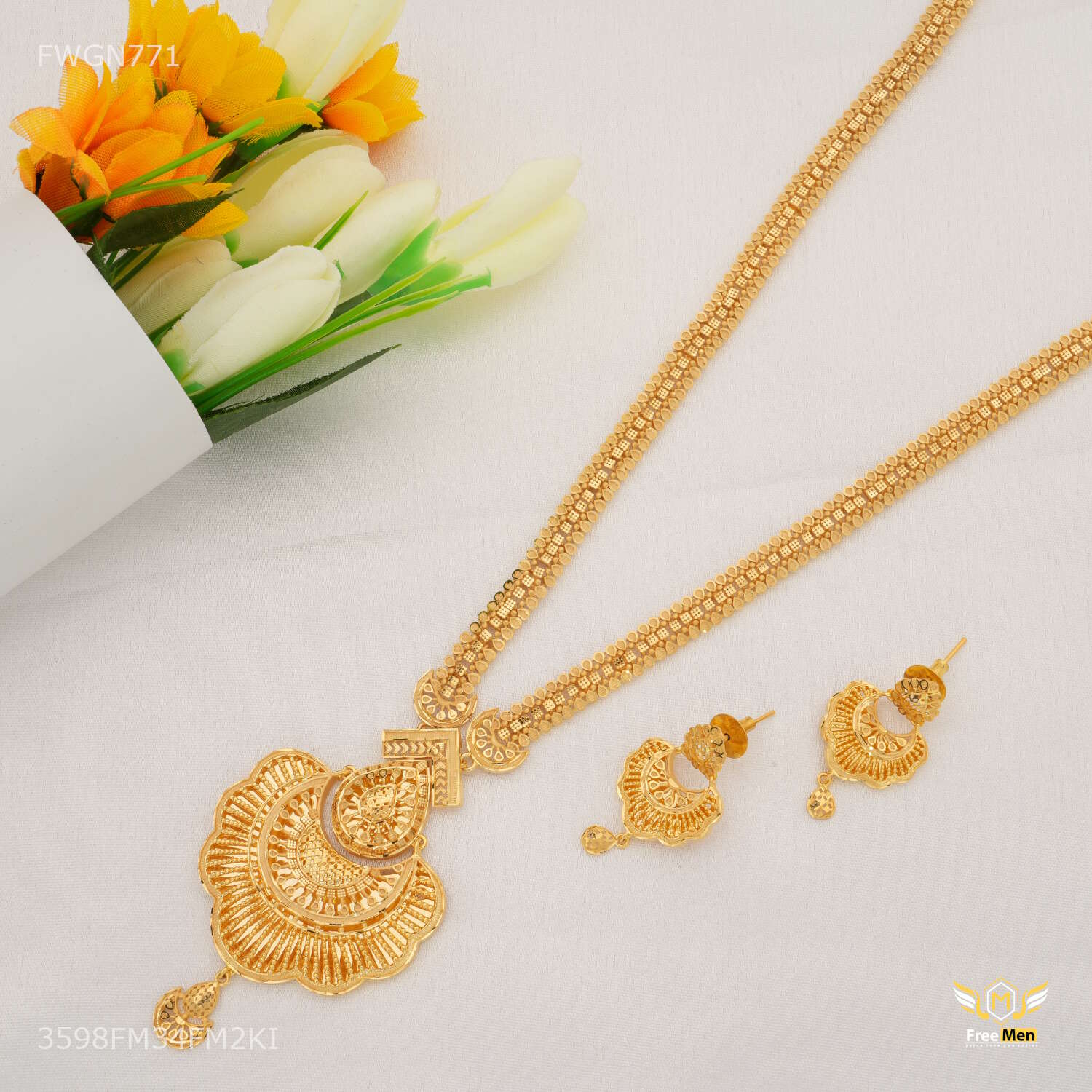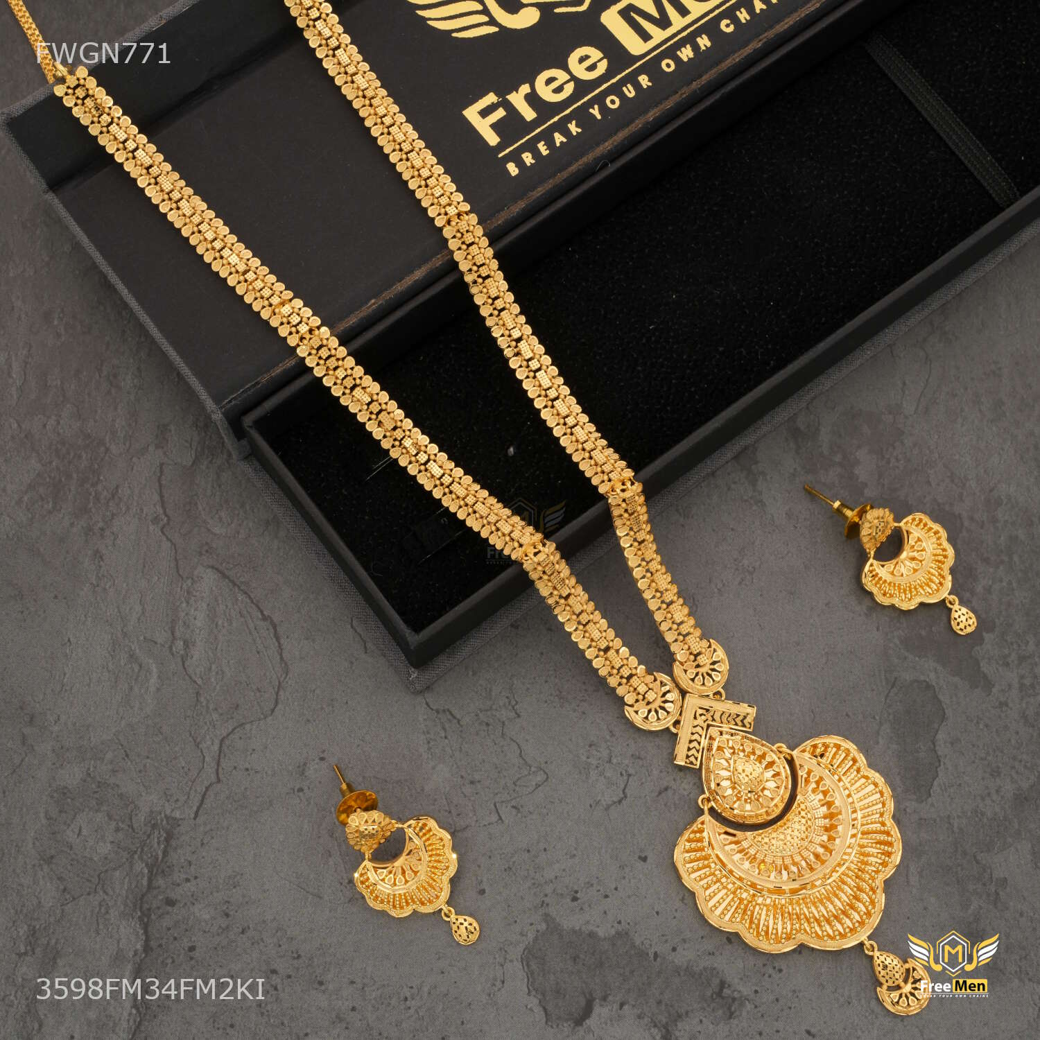Antique Drop Shape with Mini Ball Rani Haar for women - FWGN771 perfect necklace for a woman is one that complements her style, personality, and the occasion. Whether it’s a delicate pendant for everyday wear, a statement necklace for a special event, or a layered combination for a fashionable look, the right necklace can enhance a woman’s natural beauty and confidence. Embrace the diversity of necklace styles and let your choice of necklace reflect your unique essence and style journey.