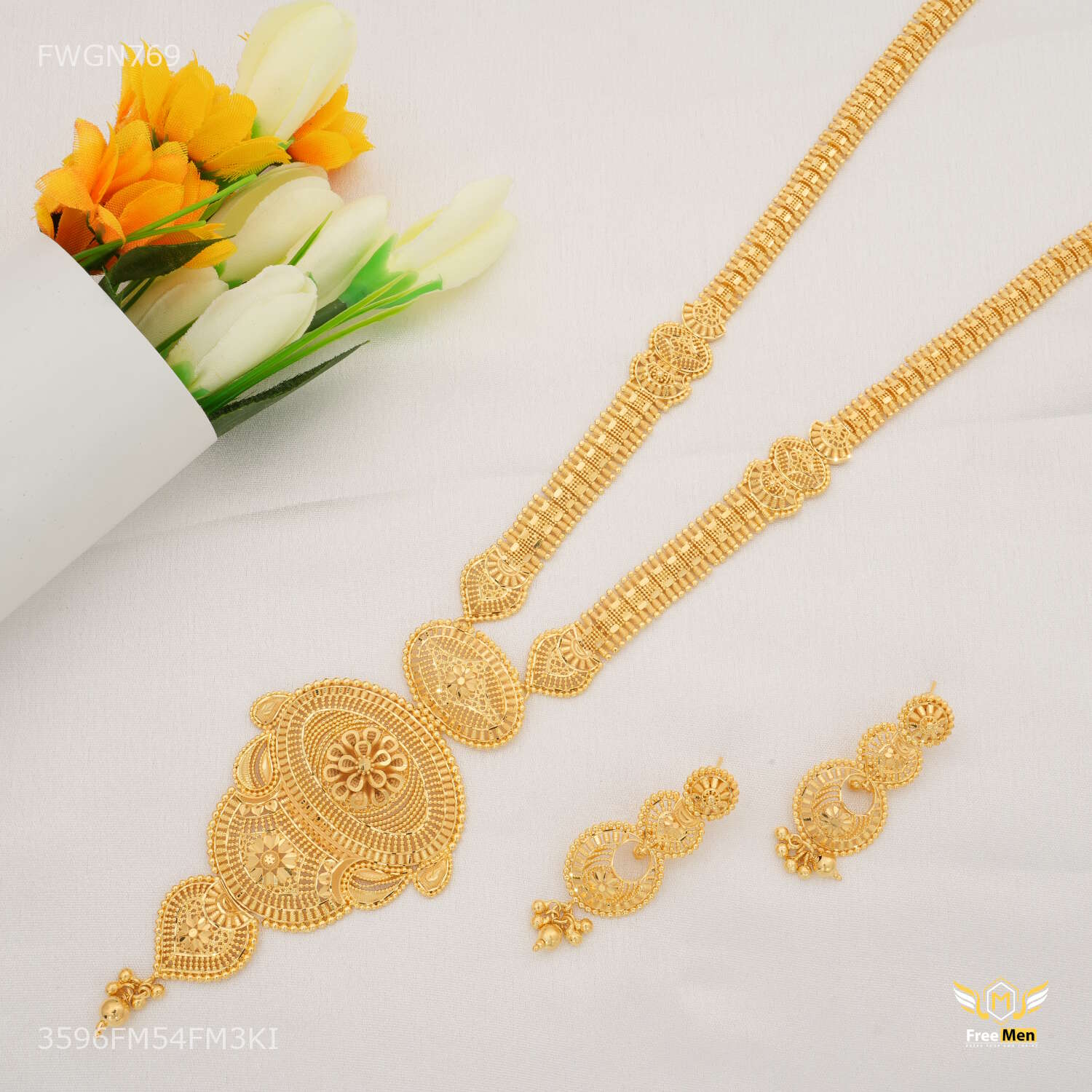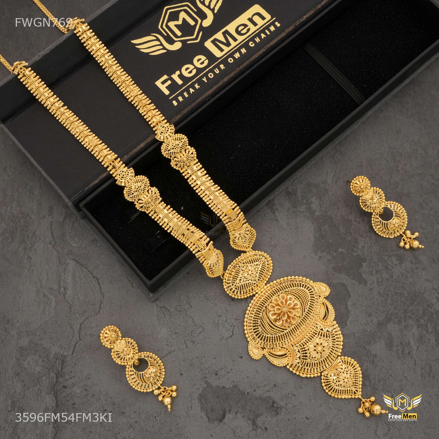 Antique Filigree Rani Haar for women - FWGN769 perfect necklace for a woman is one that complements her style, personality, and the occasion. Whether it’s a delicate pendant for everyday wear, a statement necklace for a special event, or a layered combination for a fashionable look, the right necklace can enhance a woman’s natural beauty and confidence. Embrace the diversity of necklace styles and let your choice of necklace reflect your unique essence and style journey.