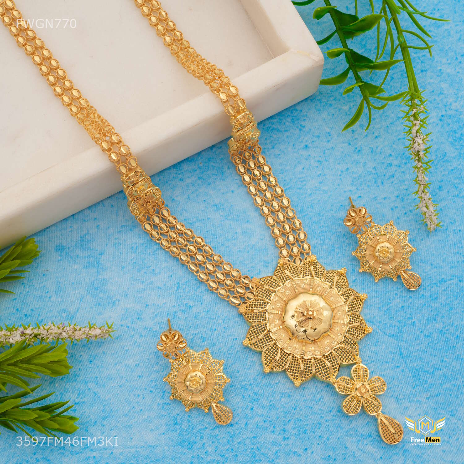 Antique Net Flower with Mini Ball Rani Haar for women - FWGN770 are made from high quality material and Stone and they are known for their comfort and look across the Globe