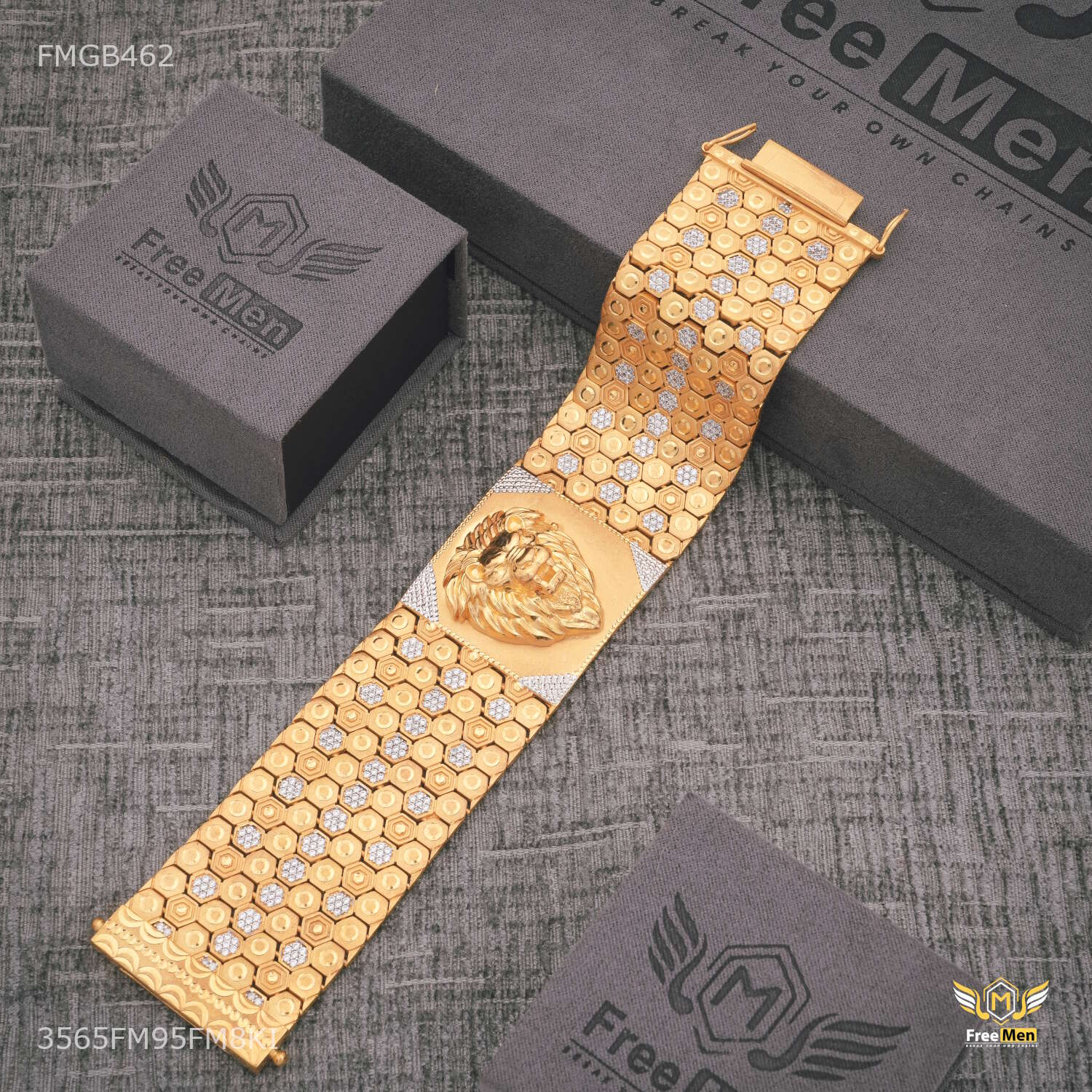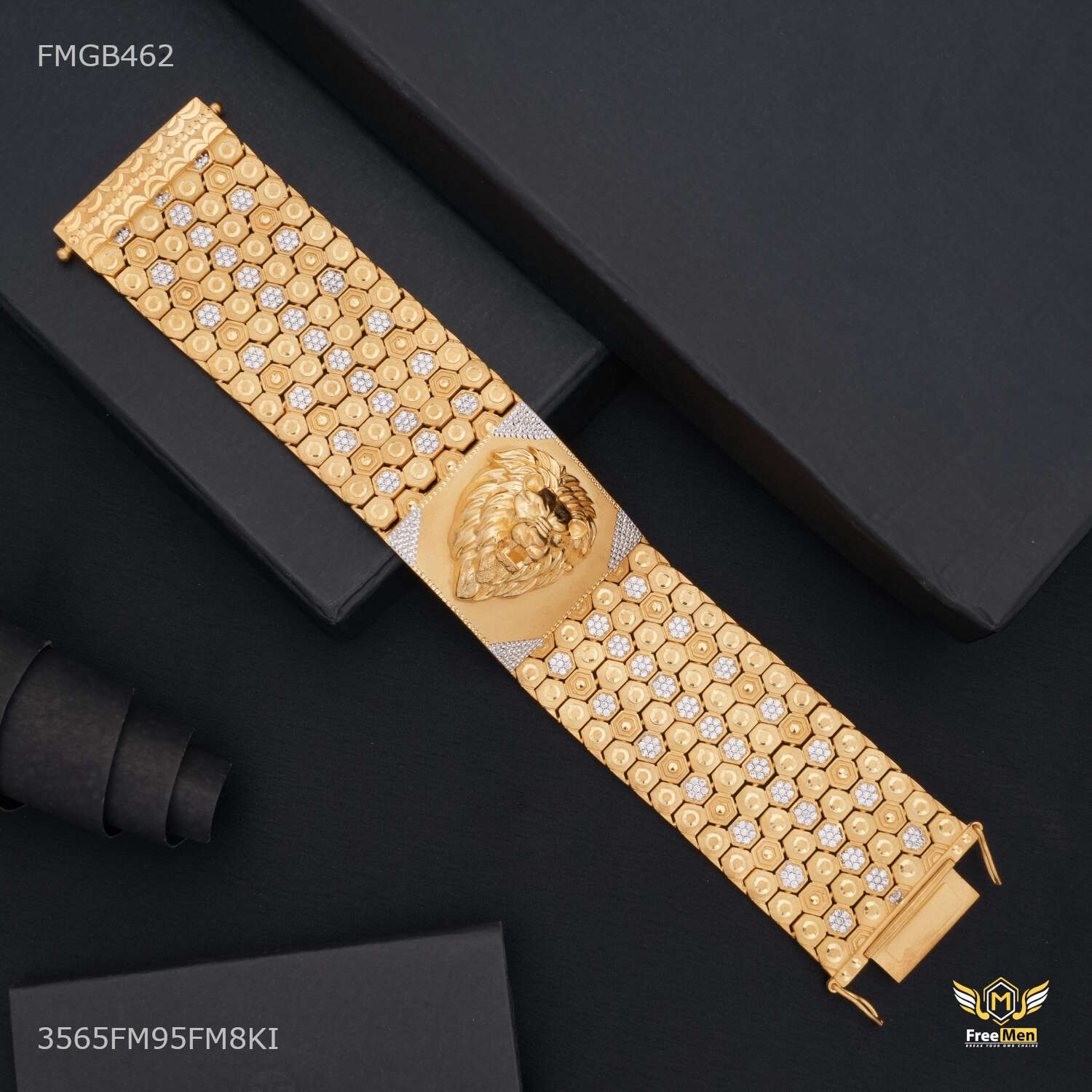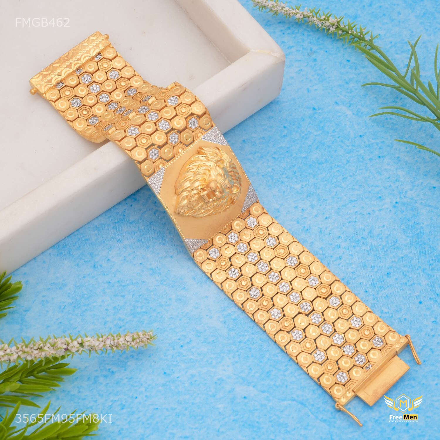 45uxury Broad Lion Face with Shini AD Bracelet For Men - FMGB462 products are made from high quality material and they are known for their comfort and look across the Globe