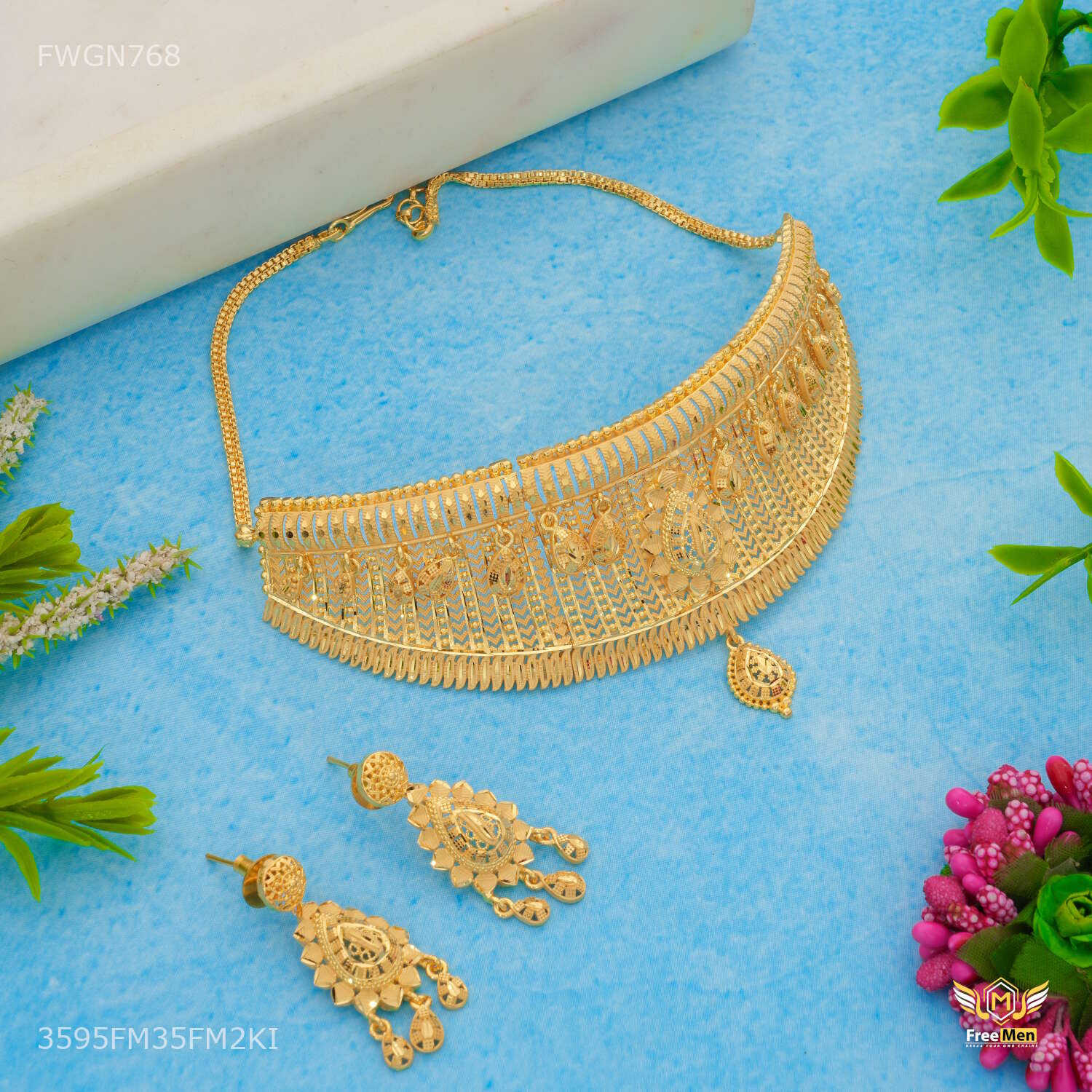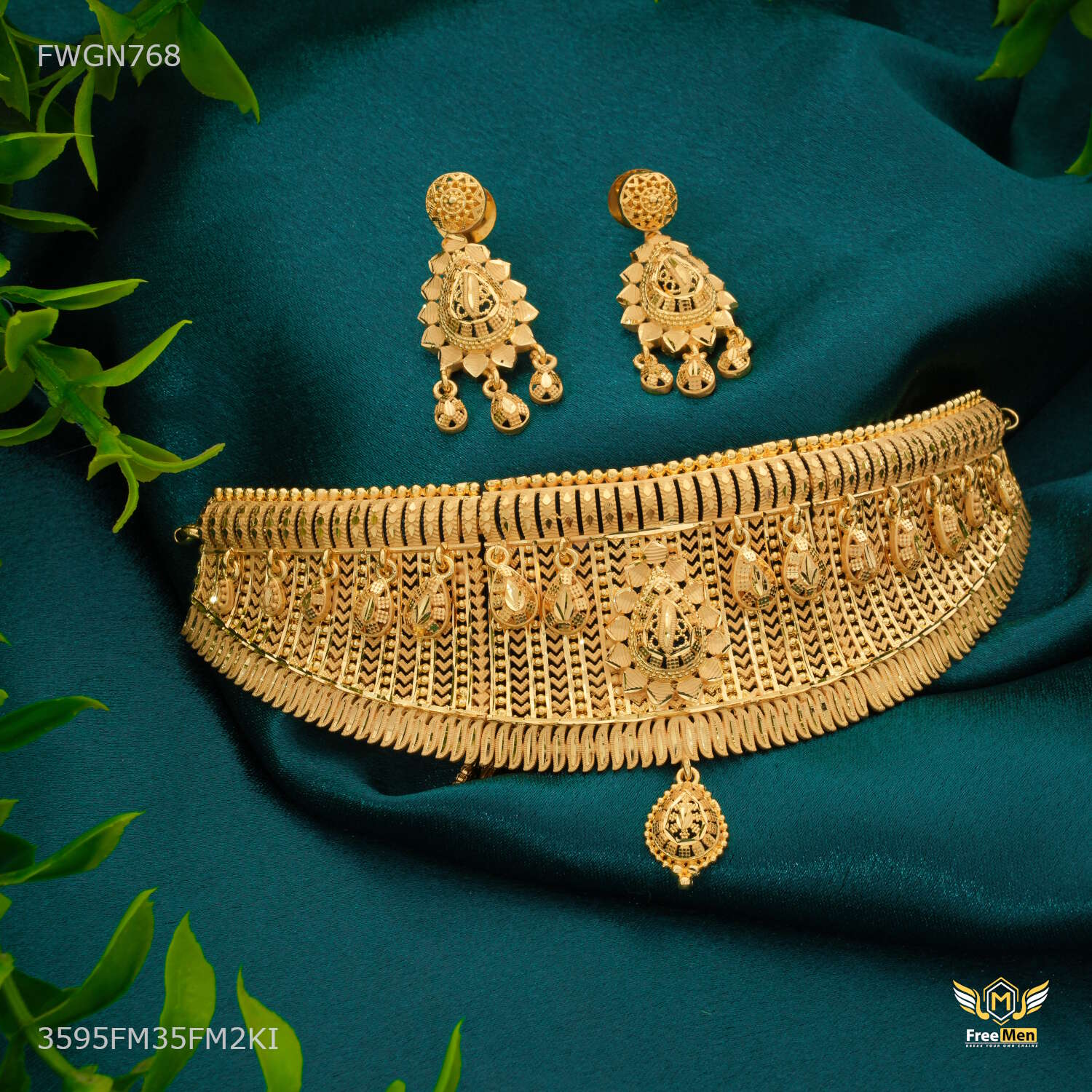 Traditional Drop Shape Flower Bridal Necklaces for women - FWGN768 perfect necklace for a woman is one that complements her style, personality, and the occasion. Whether it’s a delicate pendant for everyday wear, a statement necklace for a special event, or a layered combination for a fashionable look, the right necklace can enhance a woman’s natural beauty and confidence. Embrace the diversity of necklace styles and let your choice of necklace reflect your unique essence and style journey.