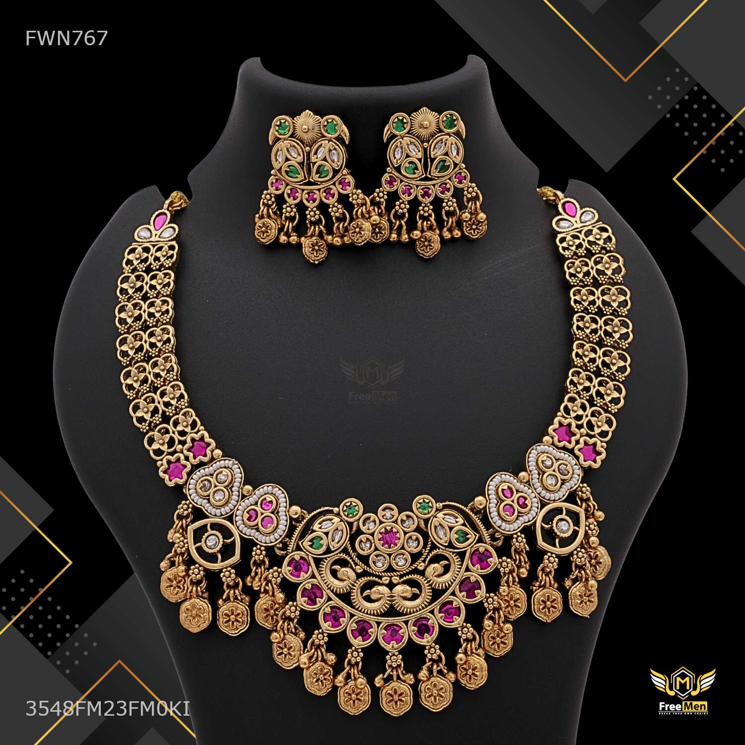 Traditional Pink Dimonds Necklace with earring for women - FWN767 are made from high quality material and Stone and they are known for their comfort and look across the Globe