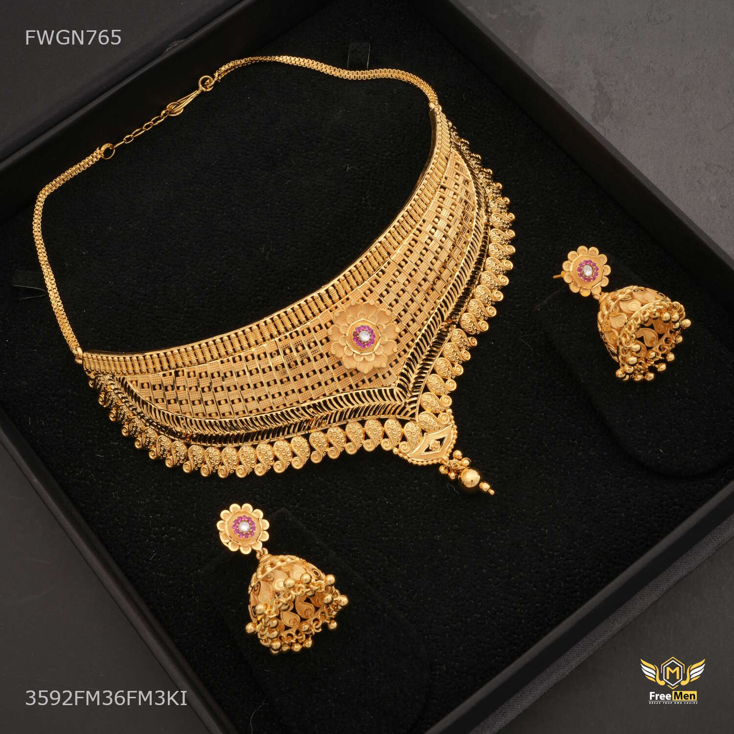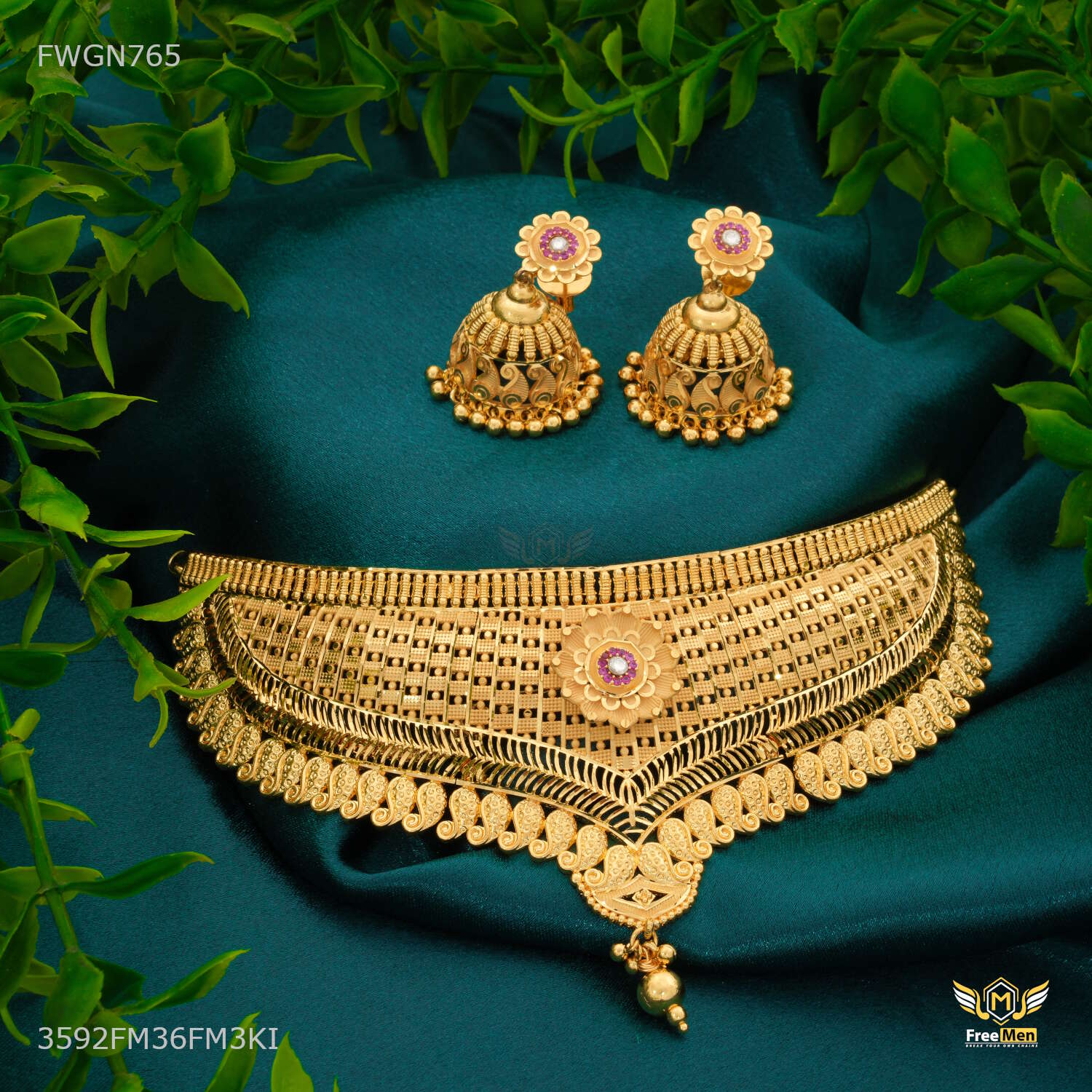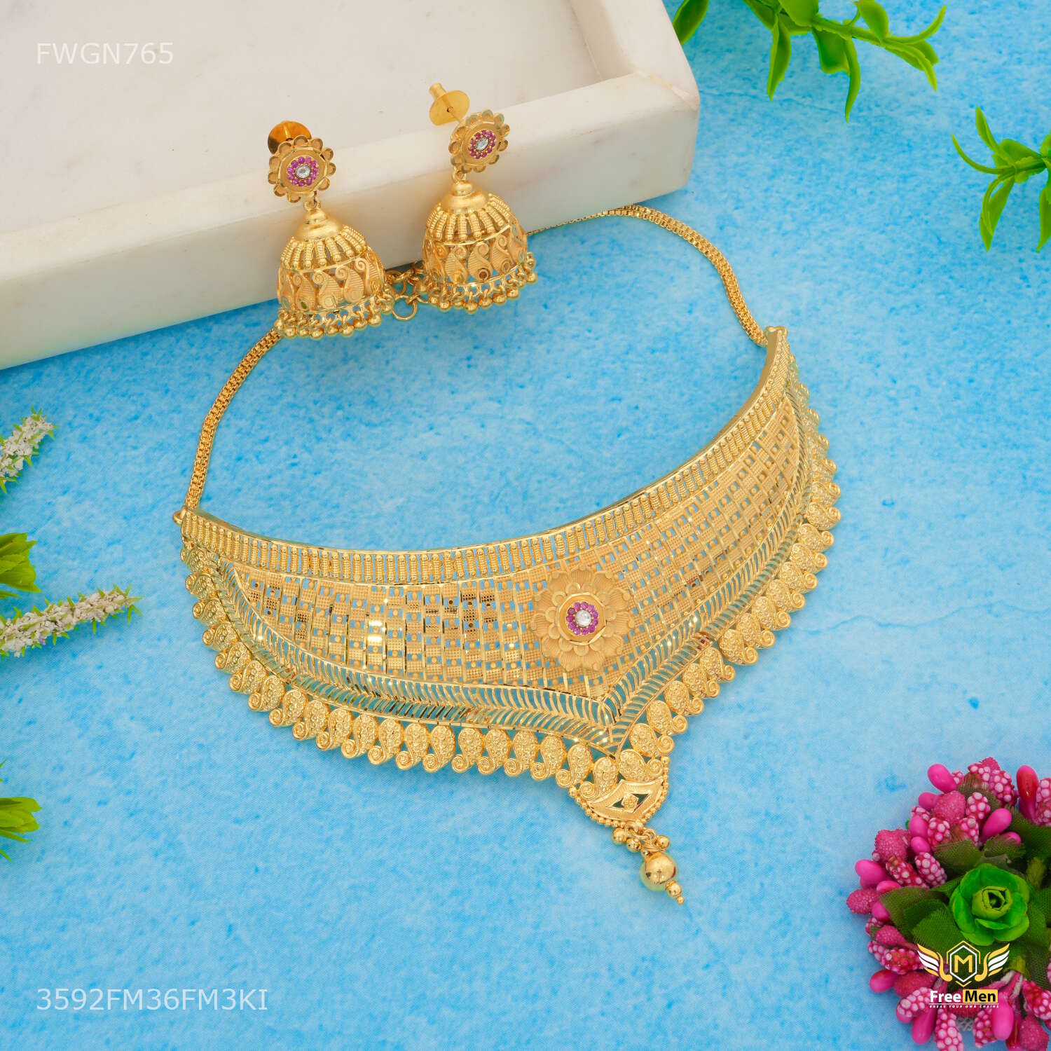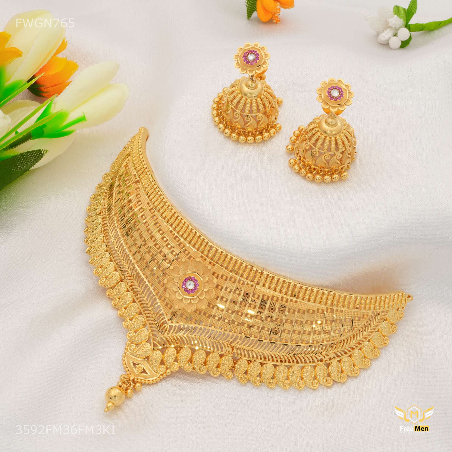 Traditional V Shape with Mini Flower Bridal Necklaces for women - FWGN765 perfect necklace for a woman is one that complements her style, personality, and the occasion. Whether it’s a delicate pendant for everyday wear, a statement necklace for a special event, or a layered combination for a fashionable look, the right necklace can enhance a woman’s natural beauty and confidence. Embrace the diversity of necklace styles and let your choice of necklace reflect your unique essence and style journey.