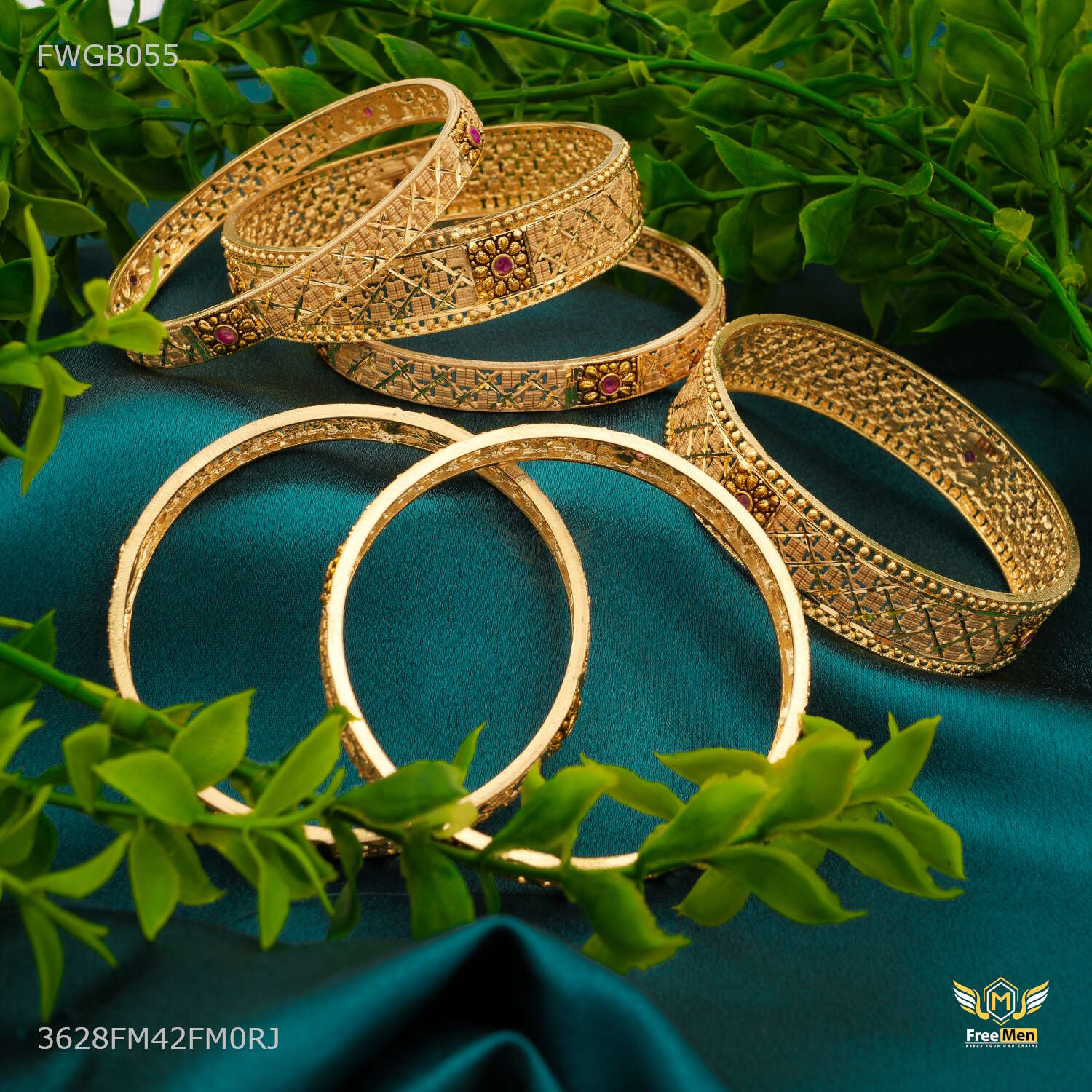 Antique Flower Box Bangles For Women - FWGB055 are made from high quality material and Stone and they are known for their comfort and look across the Globe