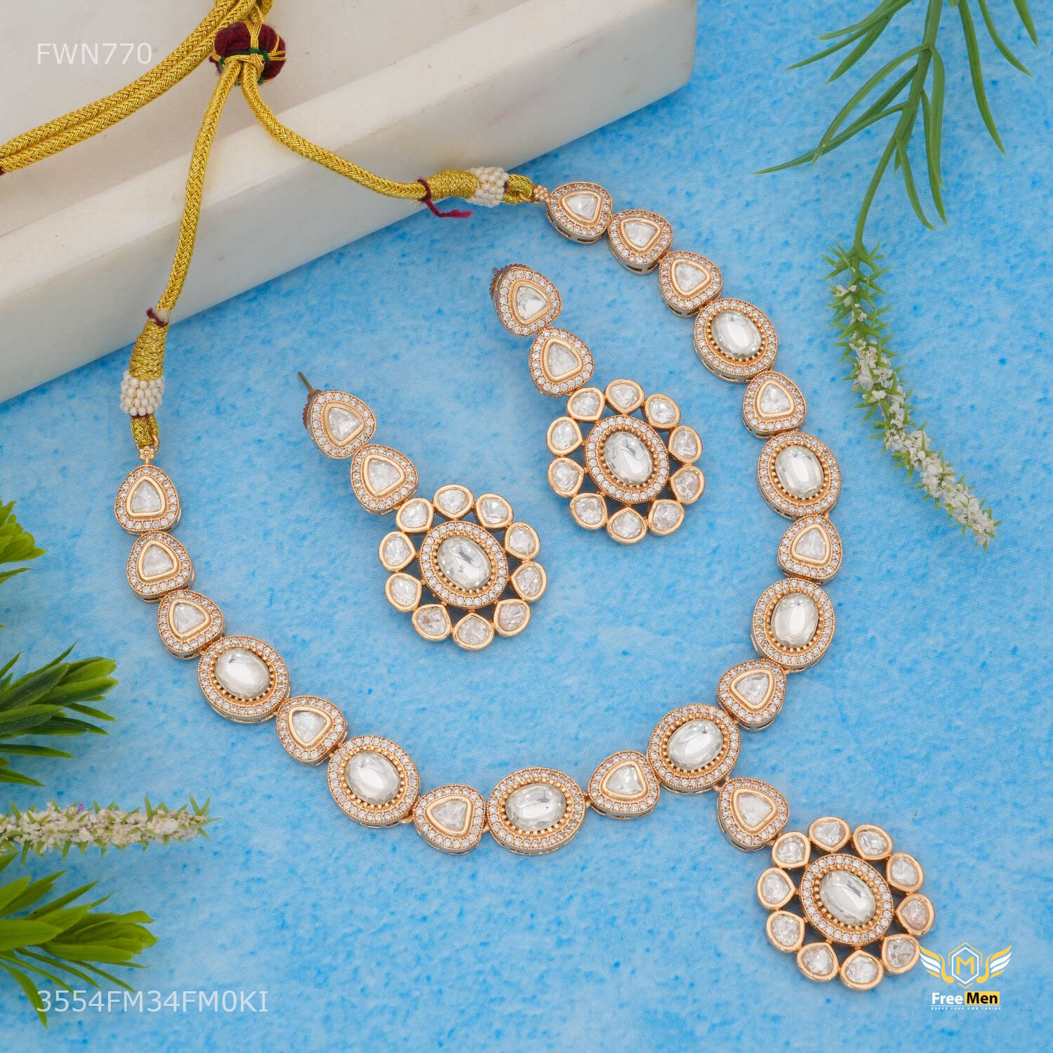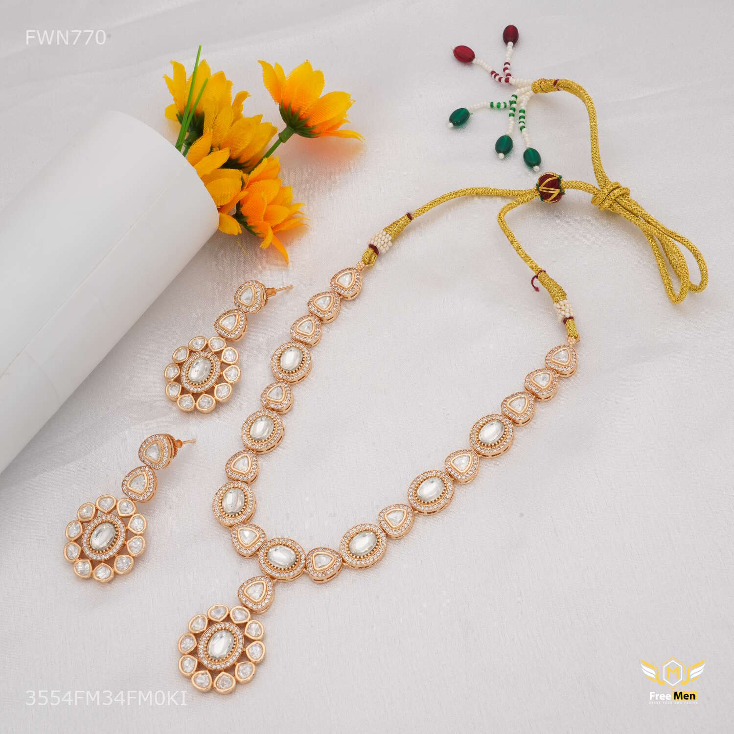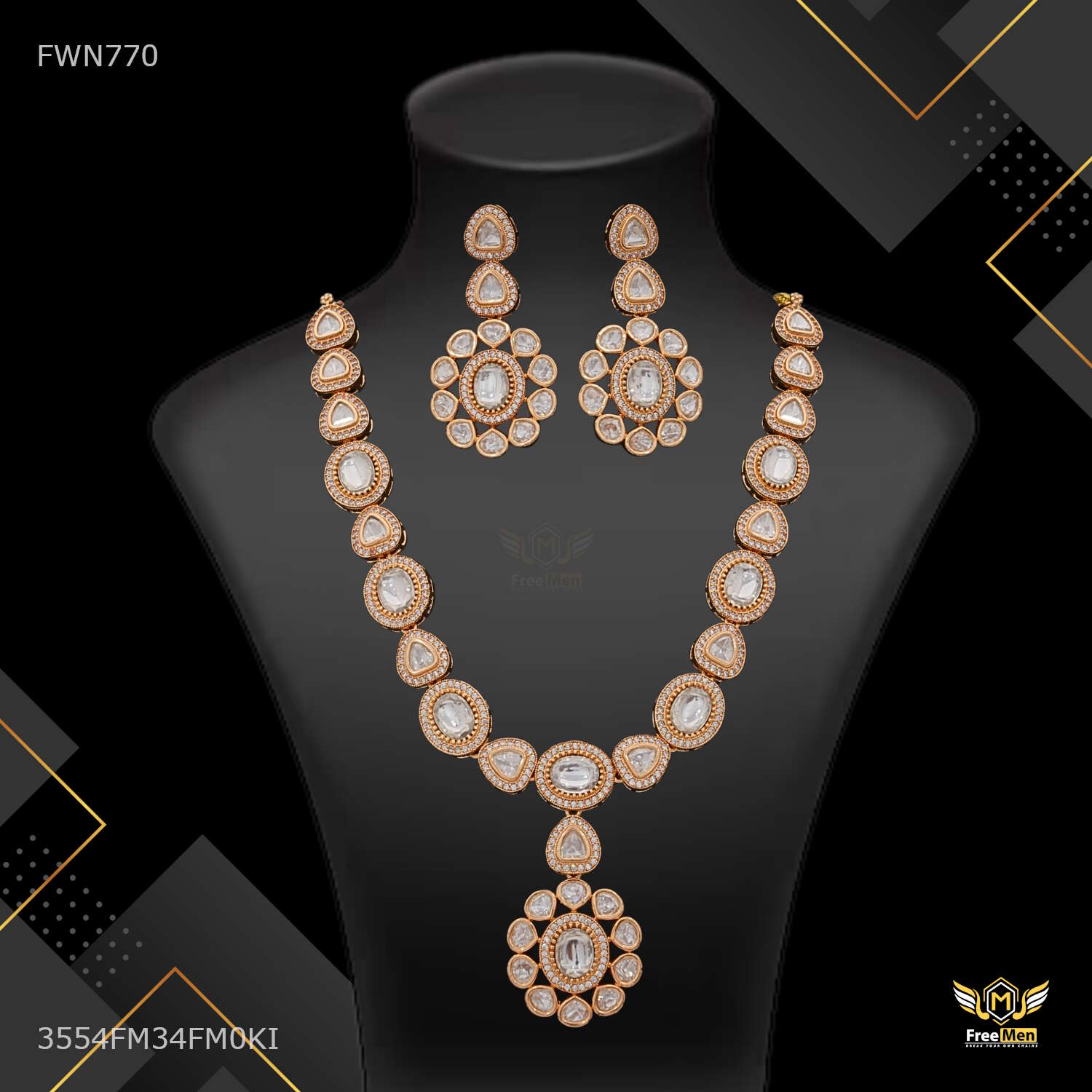 Antique White Dimond Rose Gold Necklace with earring for women - FWN770 are made from high quality material and Stone and they are known for their comfort and look across the Globe