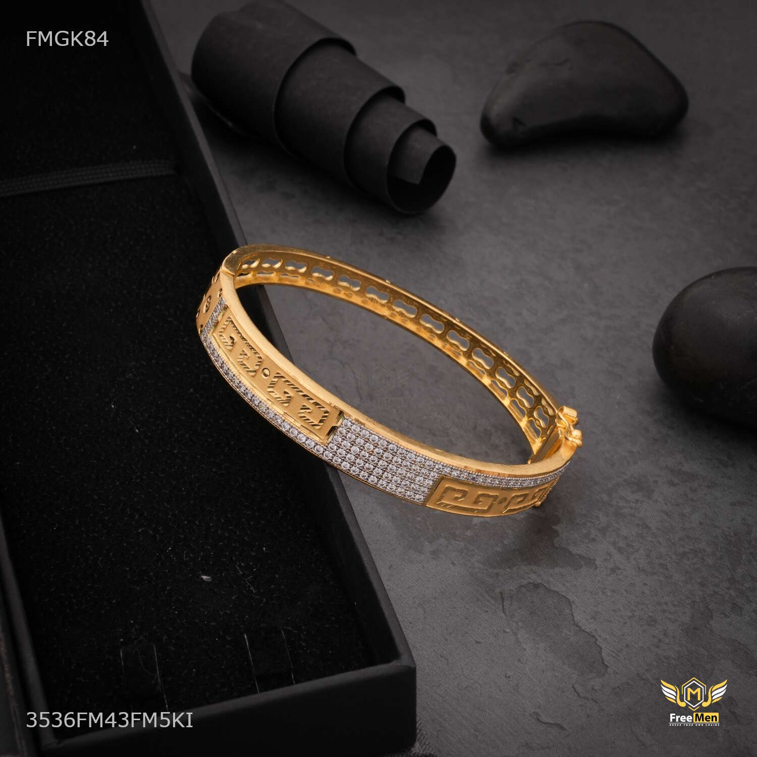 Designer Round AD Box gold plated kada for Men FMGK84 FreeMen golden and silver kada for Men Men's Gold Chains Online, Shop latest men's jewellery collection with best prices from freemen. Check out our gold mens chains collections now