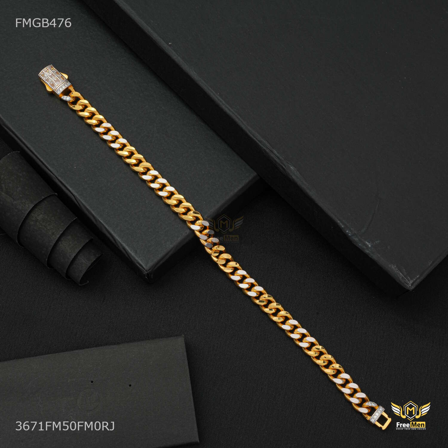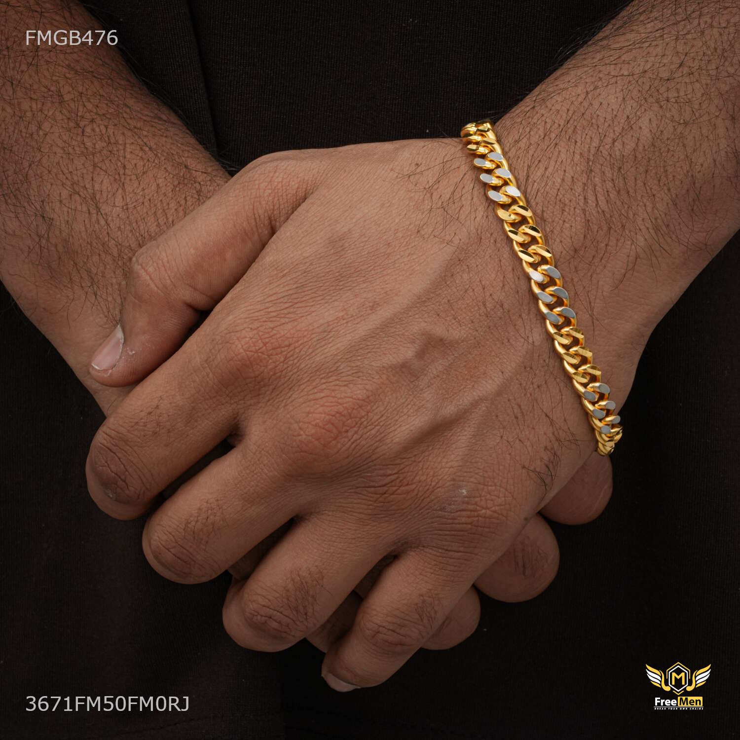 Designer Thin Rhodium Ring to Ring Bracelet For Men - FMGB476 are not just accessories; they are reflections of your personality and taste. Explore our collection today and redefine your style with these exquisite pieces. Make a statement. Embrace tradition. Choose Freemen Nagraj AD casting Bracelet for Men an unparalleled fashion experience.