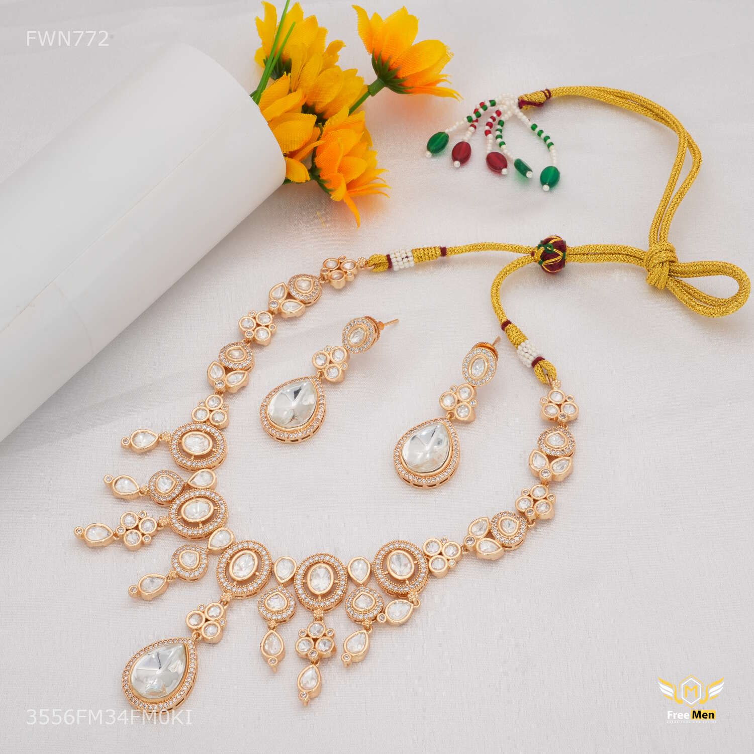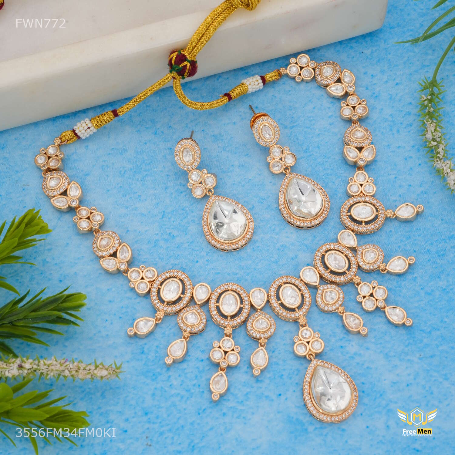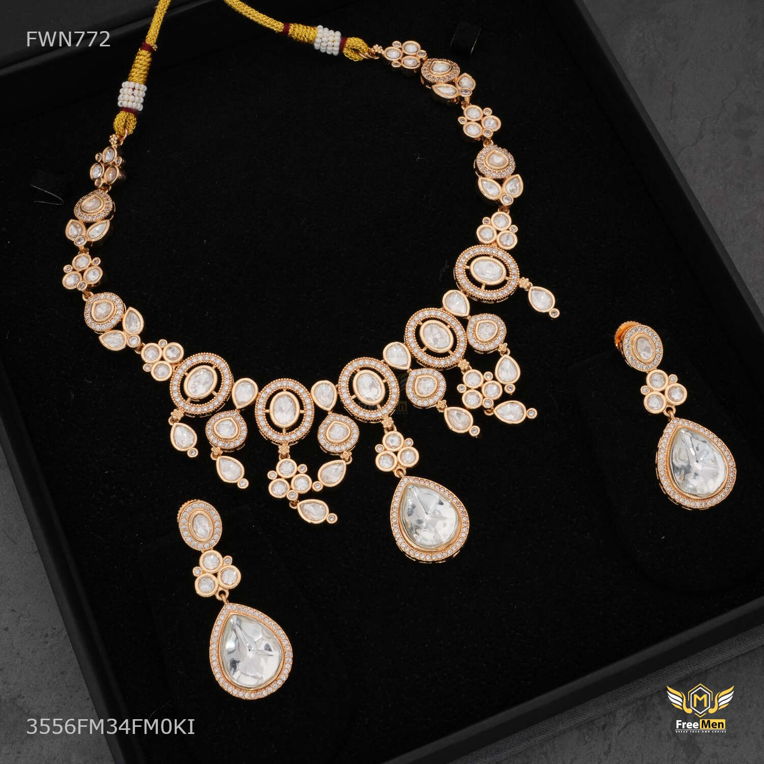 Dimond Rose Gold Antique Necklace with earring for women - FWN772 are made from high quality material and Stone and they are known for their comfort and look across the Globe