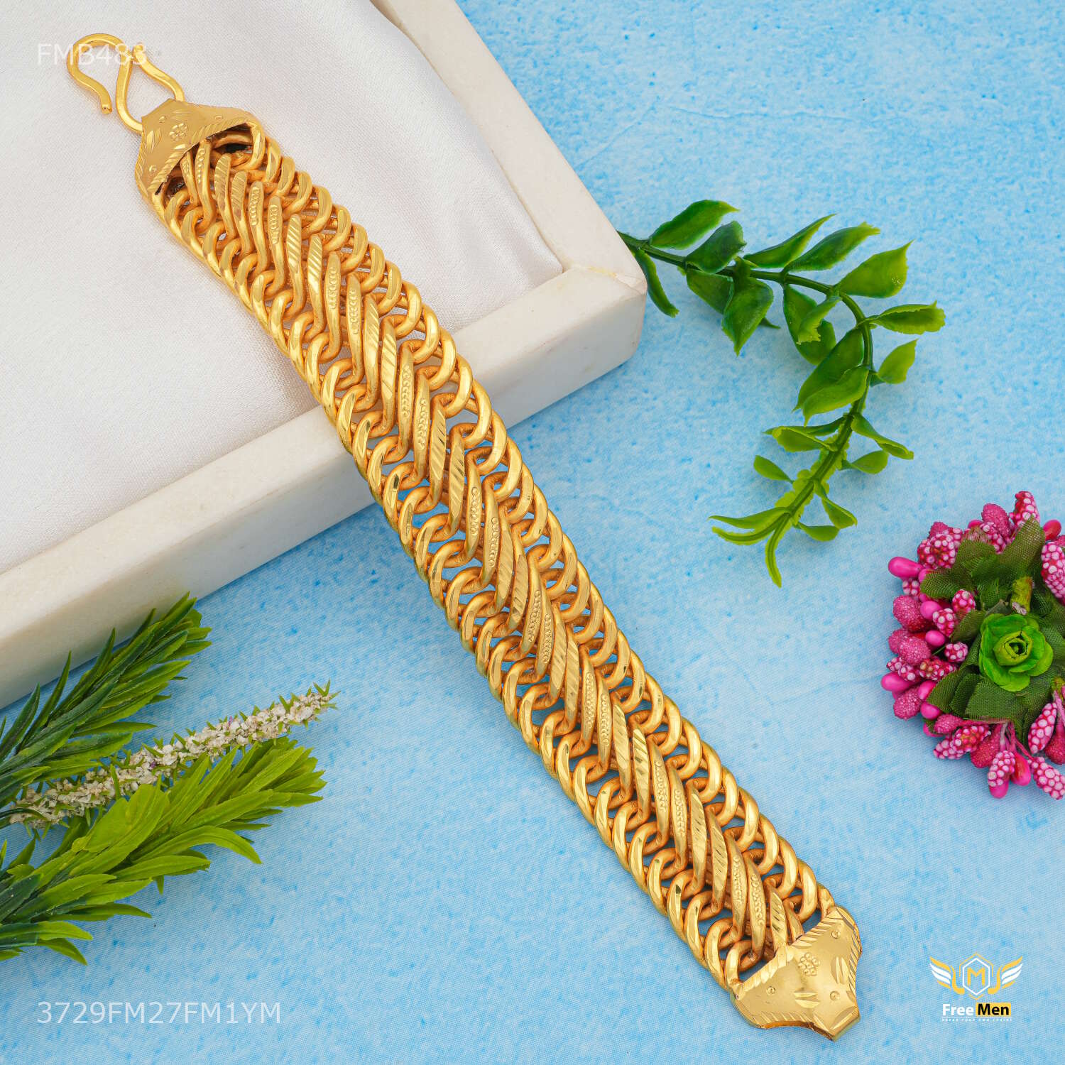 Dual Heavy Atta Bracelet For Men - FMB483 Shop the latest men's golden bracelet designs online. Find stylish gold bracelets for men at the best prices. Explore our collection today and redefine your style with these exquisite pieces. Make a statement. Embrace tradition. Choose Freemen Nawabi goldne Bracelet For Men an unparalleled fashion experience.
