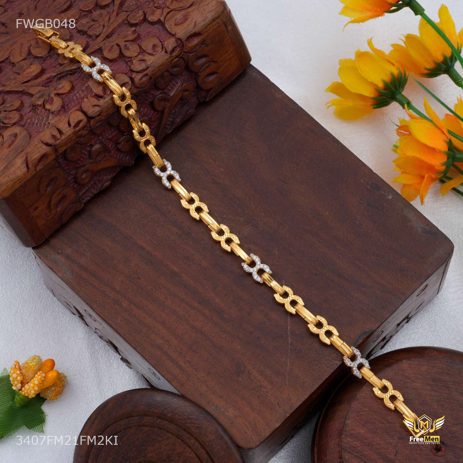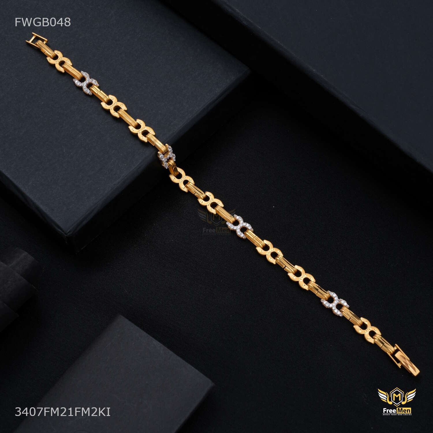 One by One C cut AD Bracelet Gold Plated For Women - FWGB0468 are not just accessories; they are reflections of your personality and taste. Explore our collection today and redefine your style with these exquisite pieces. Make a statement. Embrace tradition. Choose Freemen Nagraj AD casting Bracelet for Men an unparalleled fashion experience.
