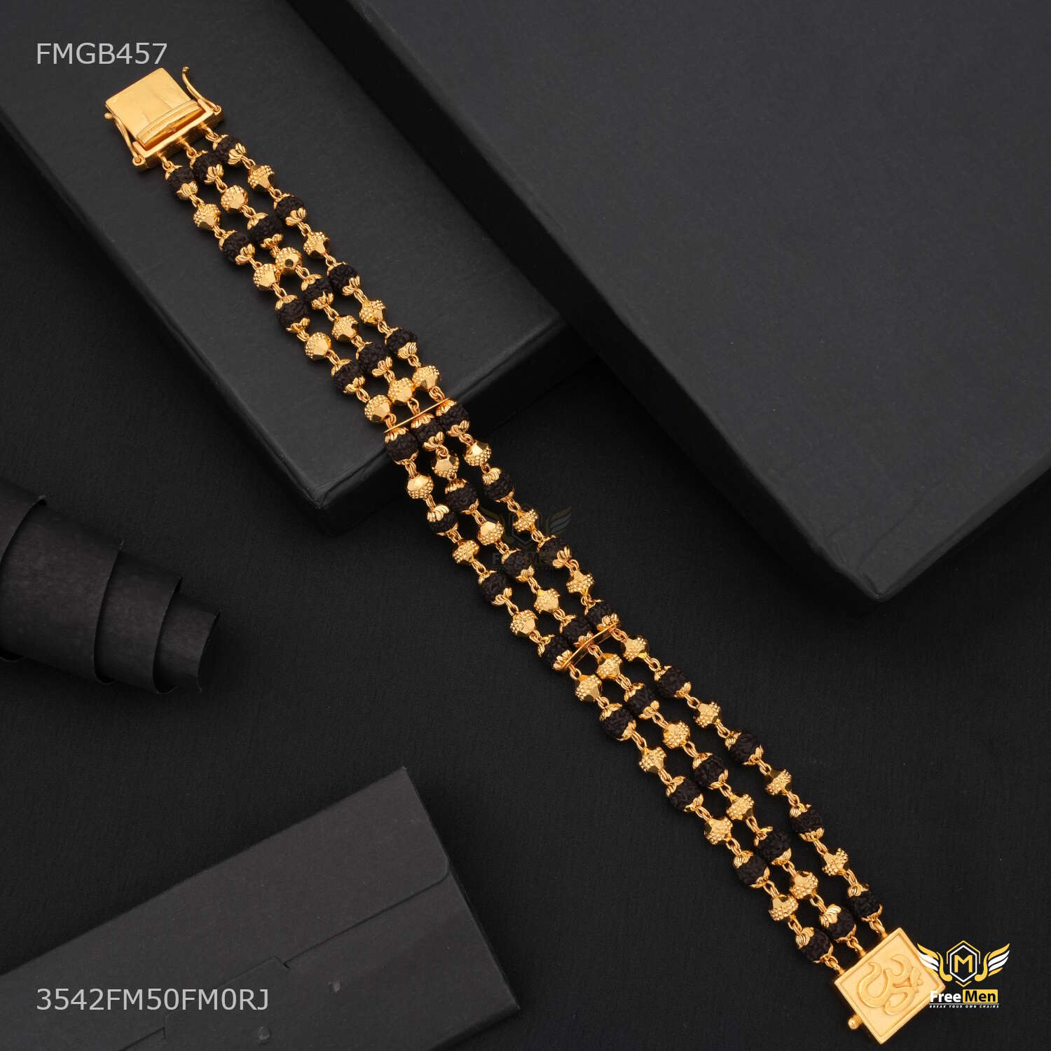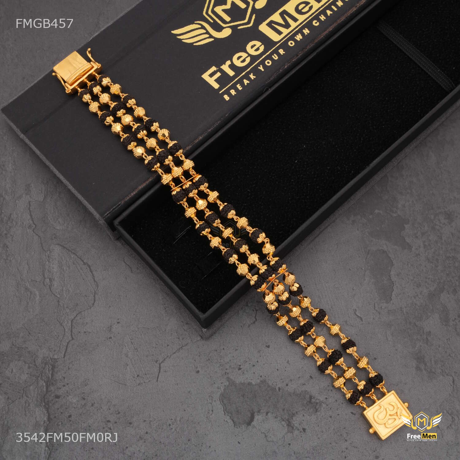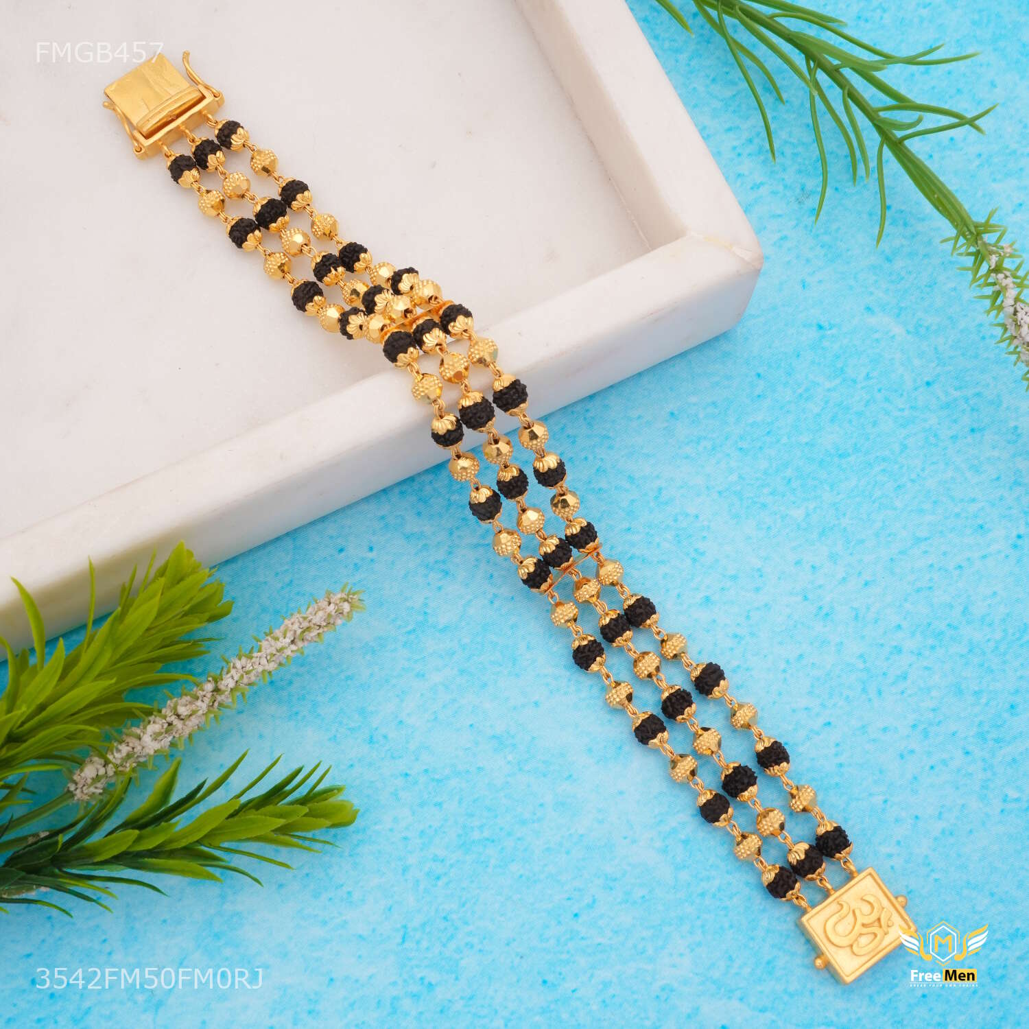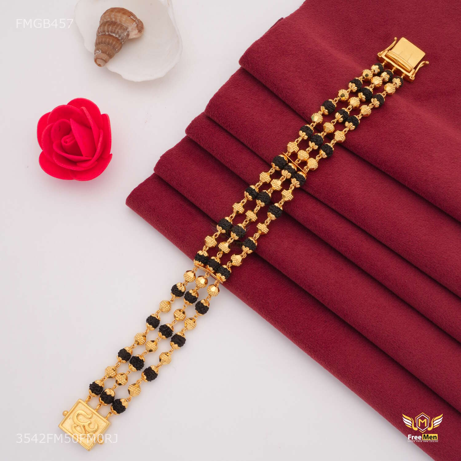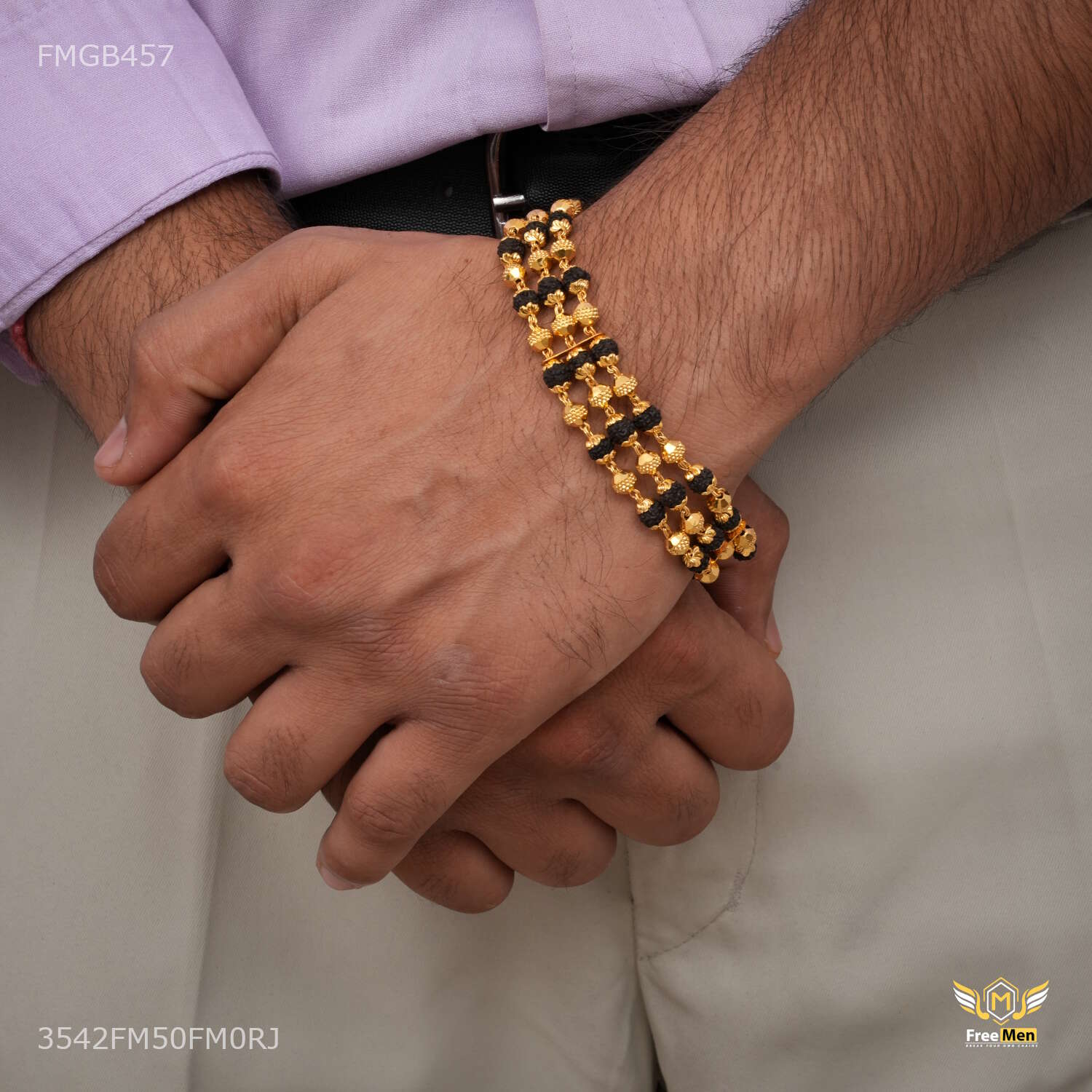 One by One Golden Ball Rudraksha Bracelet For Men - FMGB457 are not just accessories; they are reflections of your personality and taste. Explore our collection today and redefine your style with these exquisite pieces. Make a statement. Embrace tradition. Choose Freemen Nagraj AD casting Bracelet for Men an unparalleled fashion experience.