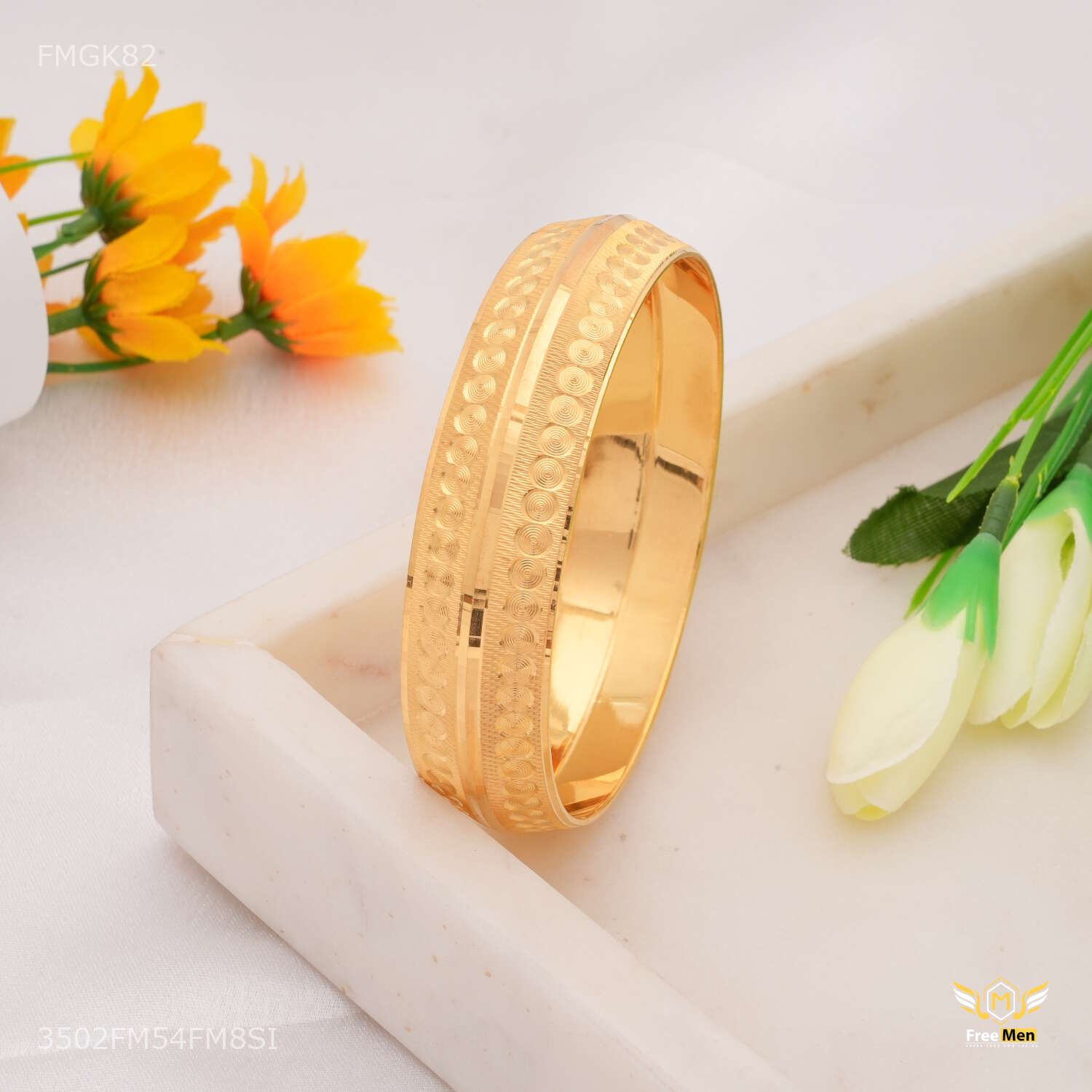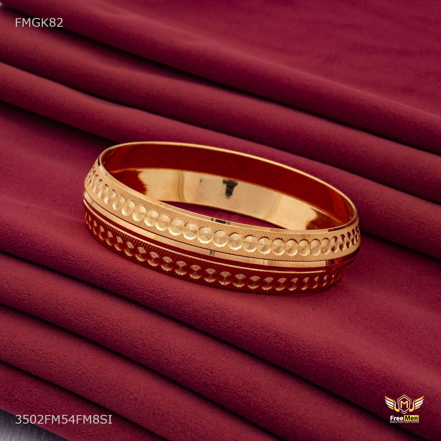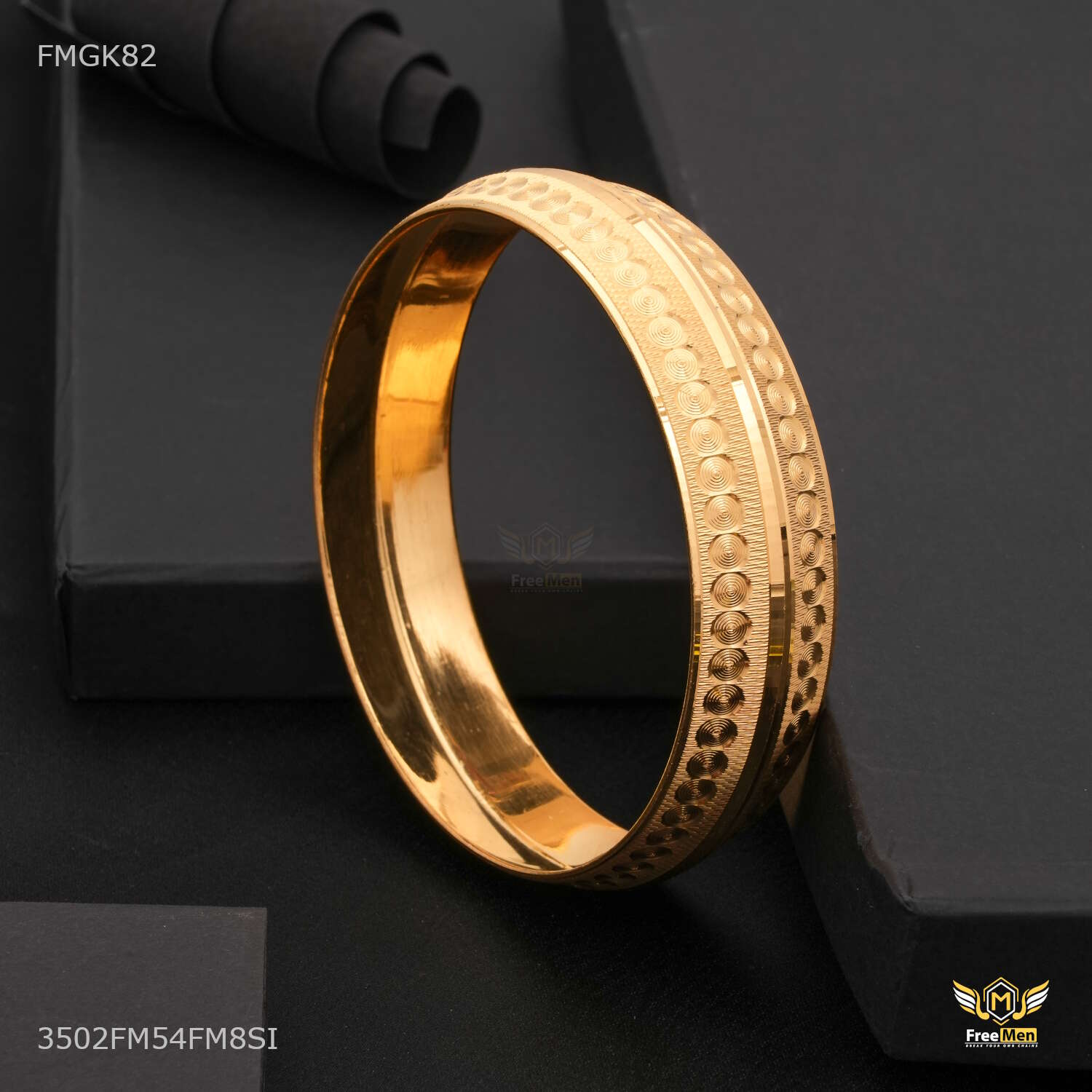 Round Rings Lining gold plated kada for Men FMGK812 products are made from high quality material and they are known for their comfort and look across the Globe