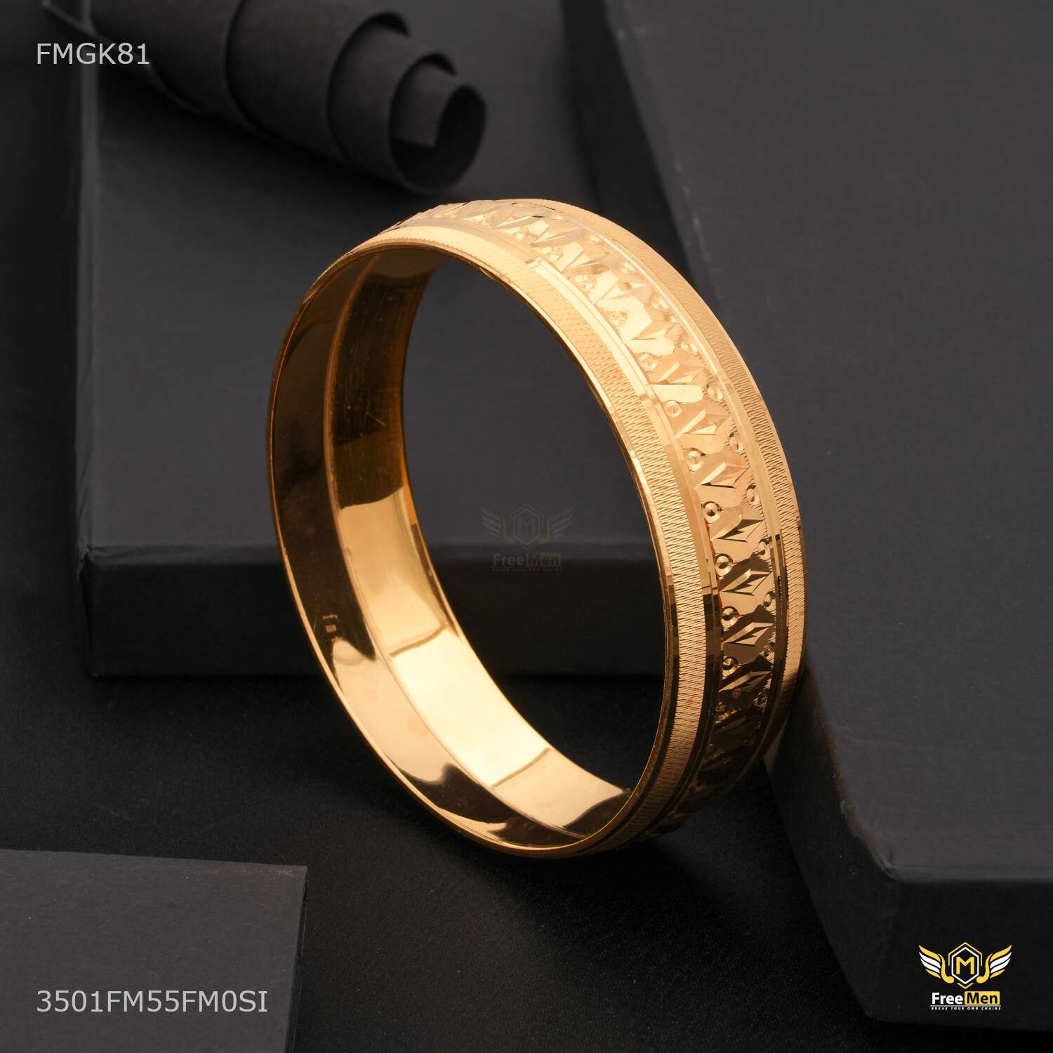 Shini Dimond cut gold plated kada for Men FMGK81 products are made from high quality material and they are known for their comfort and look across the Globe