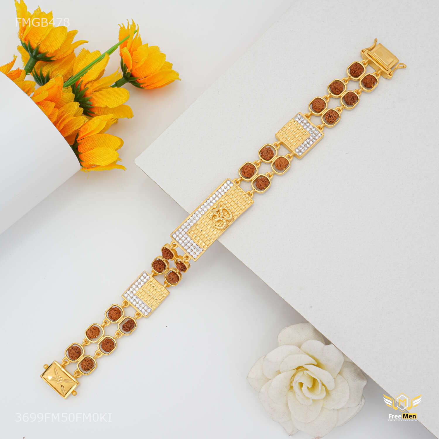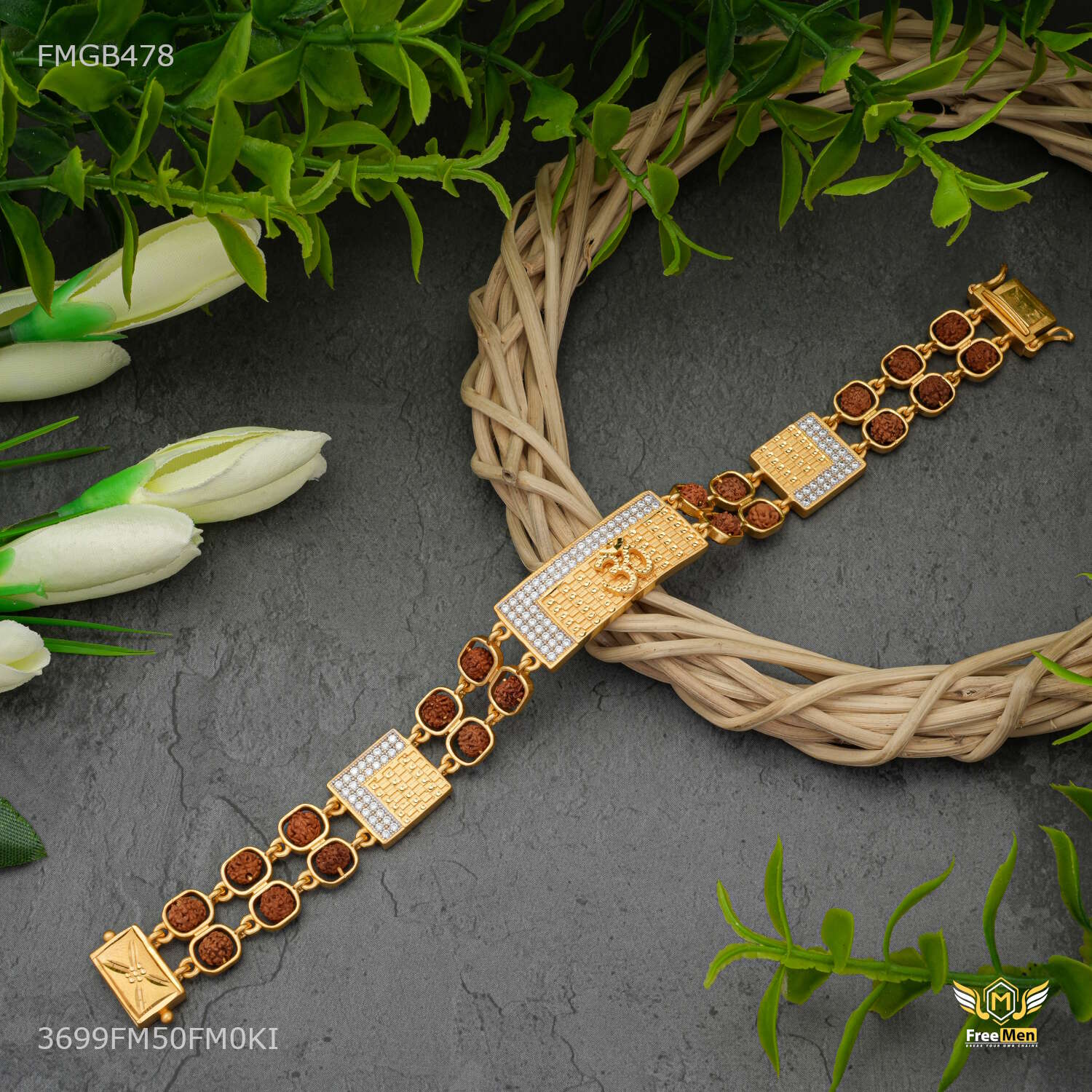 Two Line Brown Rudraksha with OM AD Box Bracelet For Men - FMGB478 are not just accessories; they are reflections of your personality and taste. Explore our collection today and redefine your style with these exquisite pieces. Make a statement. Embrace tradition. Choose Freemen Nagraj AD casting Bracelet for Men an unparalleled fashion experience.